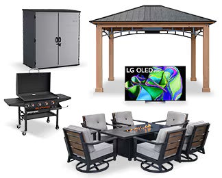 Create a comfortable and welcoming oasis with premium patio & outdoor furniture from Costco. Whether you're hosting family dinners or relaxing with friends, our stylish dining sets and outdoor seating sets provide the perfect setting. Add ambiance and warmth with cozy fire pits and patio heaters, or create a cool retreat with shade structures like gazebos, canopies and pergolas. We also carry awnings & window shades that provide sun protection for both inside and outside your home. Choose from motorized awnings or pole-operated models to effortlessly extend or retract your canopy, giving you complete control over your privacy and comfort. And if you’re looking for something portable, Costco also has a large collection of patio umbrellas in numerous sizes and colors.