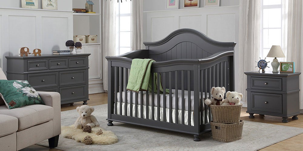 The Carlie Nursery Collection offers a modern contemporary look and design. The lovely Pebble Grey or White finish is clean and timeless, making it perfect for a boy or a girl. This collection will see your baby all the way through their childhood and into their teenage years. The crib converts to a toddler bed (rail included), a daybed, and a double bed (extension kit included). A graceful arch highlights the elegant crib. This collection is made from solid New Zealand Pine in a lovely grey or white finish. The 7-drawer double dresser and nightstand include brush nickel accents on the drawers, full extension glides, and dovetail joints on drawers which are added features that will make the furniture last for many years.