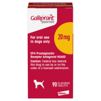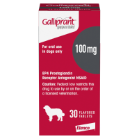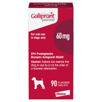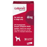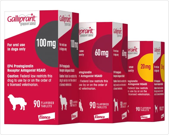 IMPORTANT SAFETY INFORMATION: For use in dogs only. Keep this and all medications out of reach of children and pets to prevent accidental ingestion or overdose. Galliprant is a non-COX inhibiting NSAID. As a class, NSAIDs may be associated with gastrointestinal, kidney and liver side effects. Evaluation for pre-existing conditions and regular monitoring are recommended. Do not use in dogs that have a hypersensitivity to grapiprant. Concomitant use of Galliprant with other NSAIDs or corticosteroids should be avoided. Concurrent use with other anti-inflammatory drugs or protein-bound drugs including cardiac, anticonvulsant and behavioral medications has not been studied. The safe use of Galliprant has not been evaluated in dogs younger than 9 months of age and less than 8 lbs., dogs used for breeding, pregnant or nursing dogs, or dogs with cardiac disease. Side effects associated with Galliprant may include diarrhea, soft mucoid stools, vomiting, and decreased appetite. Contact your veterinarian immediately if you think your dog may have a medical problem or side effect while on Galliprant. Click here for full prescribing information.