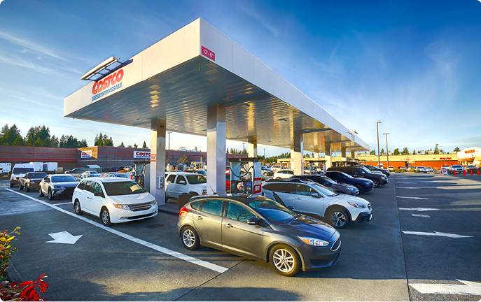Fill up your tank with Kirkland Signature Gasoline – certified to meet TOP TIER™ performance standards – available in both regular and premium grades at consistently low prices. You'll find clean and safe surroundings at our gas stations, with long hoses to fill up from either side of your car for an easy fueling experience.