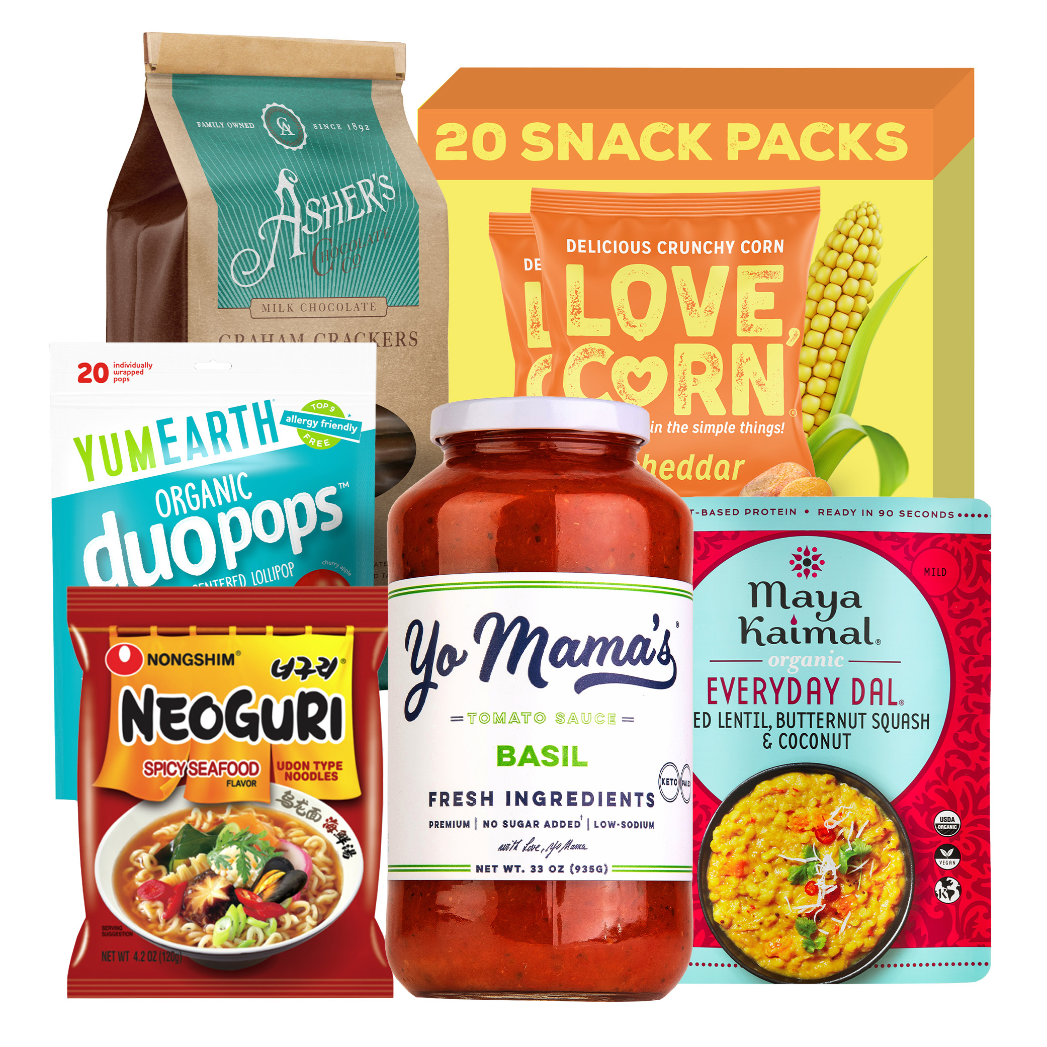 Yo Mama’s Foods - Basil Pasta Sauce, Sensitive Marinara, Spicy Tomato Sauce, Four Cheese Tomato Sauce, Alfredo Sauces, Gluten Free Pastas, Pizza Sauces, Buffalo Sauce, BBQ Sauce, Ketchup, Ranch Dressing, Greek Dressing & Dip, Honey Balsamic Dressing & Marinade, Asian Sesame Dressing & Marinade
