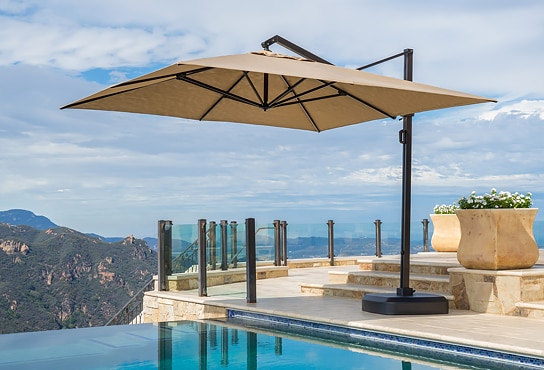 Furnish your yard with freestanding umbrellas to create cool, shaded areas where the mind and body can feel at ease, undisturbed by the heat of the sun.