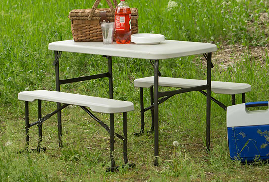 When you're ready to serve your famous grilled creations, it will be nice to sit down and really enjoy it, during a commercial break of course. As a bonus, both benches stow under the table top for easy storage and transport.