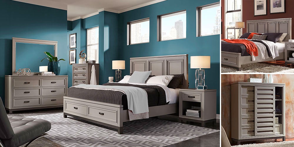 The Norah Bedroom Collection is perfect for someone looking for something classic, but unique. The design is classic, and the matte grey finish gives it something special. The matte finish contrasts with metal accents to create the signature look. The metal frame and hardware have a simple, modern shape, complimented by the rich gun metal color. Thoughtfully designed with innovative and useful features, the collection boasts large drawers, English dovetail joinery, full extension drawer glides, felt lined top drawers, cedar lined bottom drawers, lamp assist feature on the headboard and smartly placed electrical outlets to recharge your devices while you recharge.