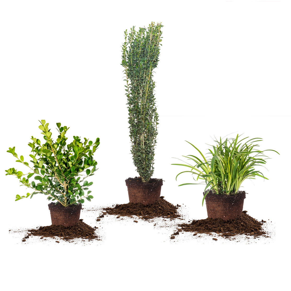 - Sun Loving Landscape Mix: 2 Sky Pencil, 3 Boxwood, 3 Variegated Liriope