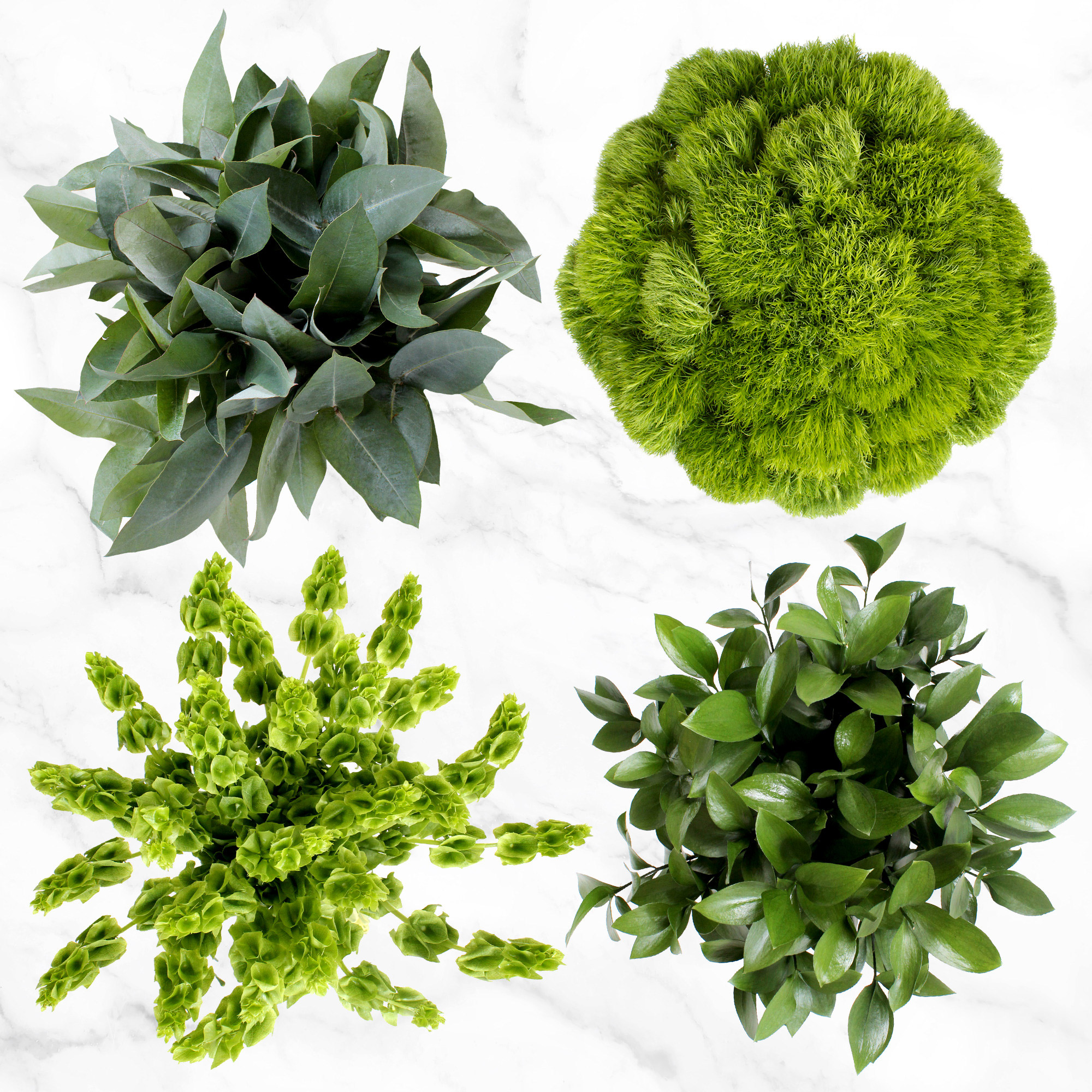 How to Order: We will attempt to deliver your floral order by the end of the day on your preferred arrival date, however, your order may arrive one day before or after your selected date. Pick your arrival date from the calendar during checkout. Arrival dates are based on the farm’s availability. Due to the perishable nature of this item, orders do NOT ship Friday through Monday. Orders only arrive Tuesday through Friday. You can choose your arrival date from the calendar during checkout. Delivery exclusions apply, see calendar at checkout. Floral Details: Greens help fill out and give form to floral arrangements.  This box has the perfect combination of Green Fillers to add texture to your arrangements. This product comes fresh from the farm and is available for Next Business Day delivery.  It can also be pre-ordered for a future arrival date. Box Includes (100 stems): 25 stems Ruscus 25 stems Eucalyptus 25 stems Green Ball 25 stems Bells of Ireland​​​​​​​ Need Help? For answers to frequently asked questions, please enter the following URL into your search bar: www.flowernet.com We are here to help! You can reach us directly at the contact information below. For cancellations or rescheduling, please contact us within 48 hours of placing order. For overnight deliveries, orders cannot be cancelled. Email:  support@flowernet.com Phone: 877-285-1256 7:00AM – 3:00PM (PST), M-F Suggestions: Tell them how you feel! Gift messaging available during the checkout process. If you want gift messages on multiple orders, individual orders need to be placed. Are your flowers for an event? Many of our flowers ship in bud form. We suggest ordering your flowers to arrive 2-3 days before your event to allow them to bloom. Did your flowers arrive looking thirsty? No worries! Just follow the included care and handling instructions to properly hydrate your flowers. After a fresh drink of water, your flowers will blossom and look more full. Flowers pictured on the site are taken after three days in water.