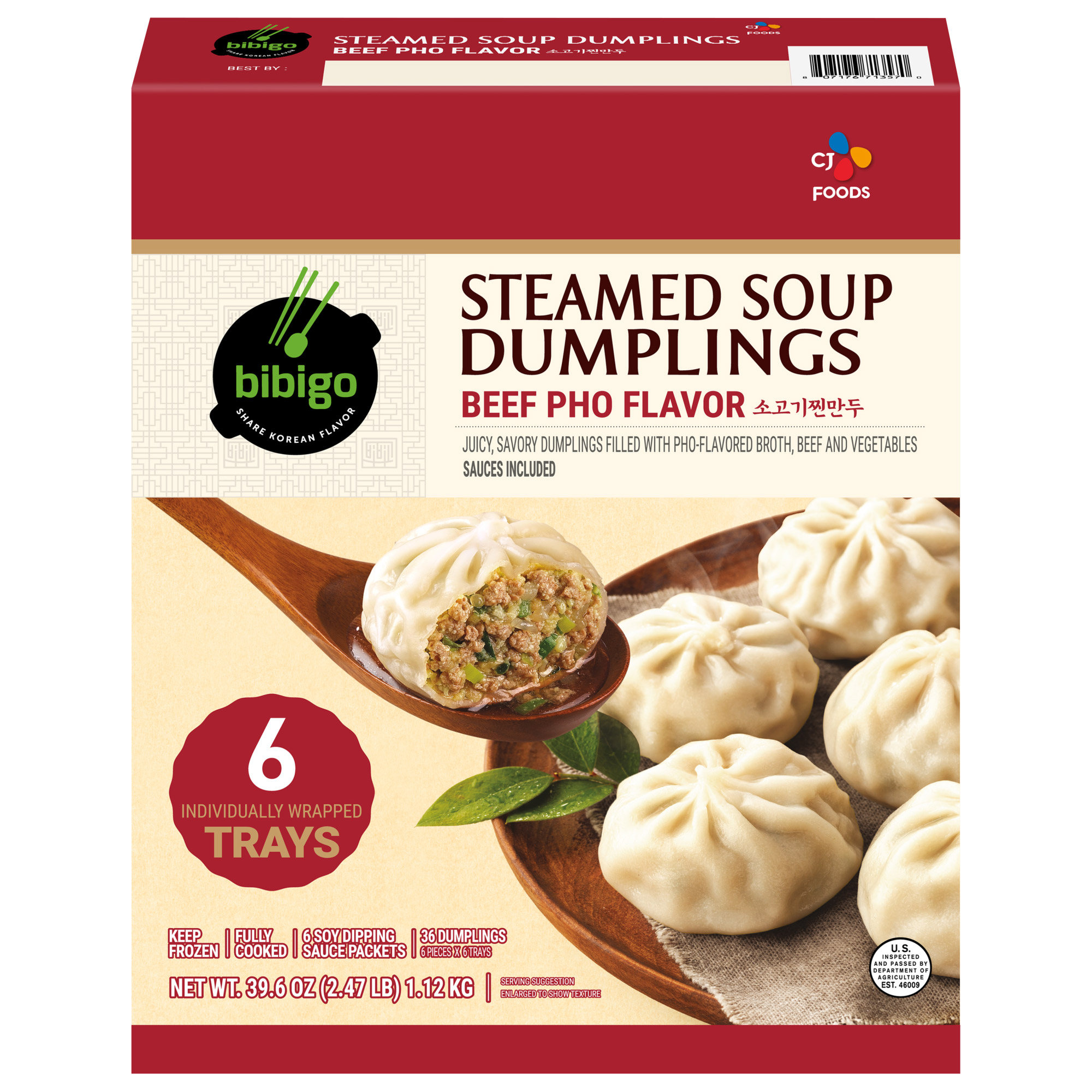 Bibigo Steamed Soup Dumplings, Beef Pho Flavor, 36-count