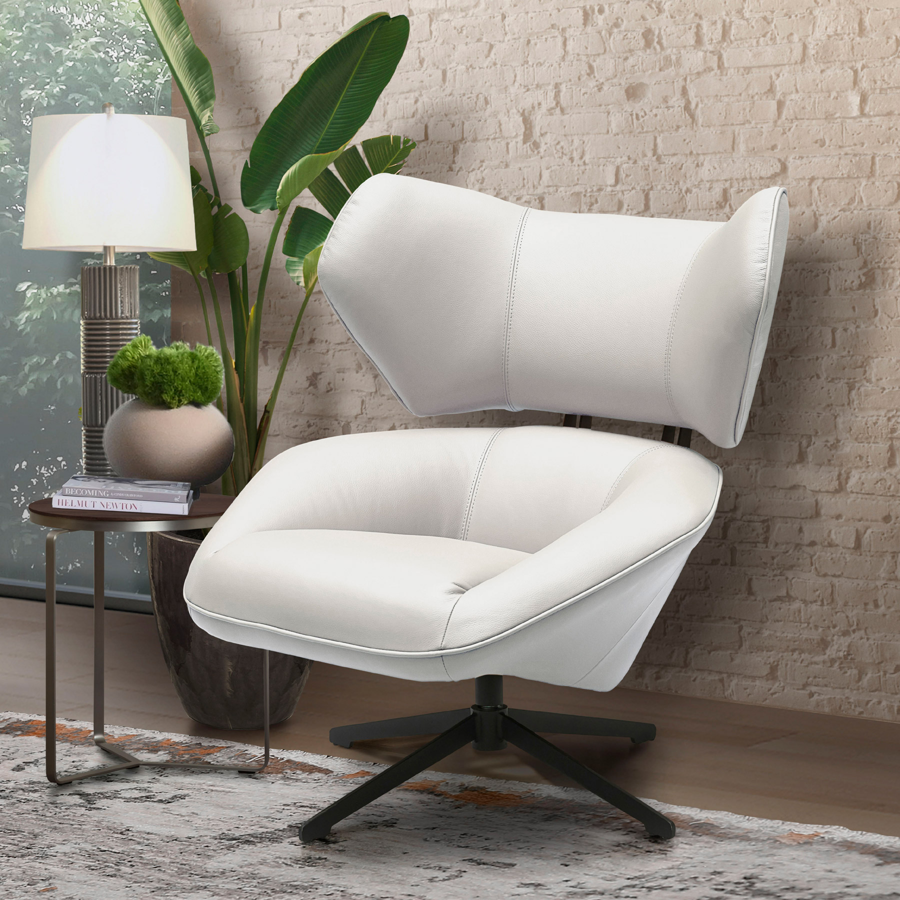 The Electra Leather Swivel Chair by Abbyson is a must have statement piece for your home, with its eye-catching egg shape and modern luxurious style. Electra is crafted fully in 100% Top Grain Leather that is soft and buttery to the touch. This accent chair features beautifully hand-crafted top stitching details throughout the seat and back, making it a stunning addition to your living space or home office. A 360-degree swivel feature, along with an elastic webbing suspension system and high-density foam seating, make this piece comfortable as well as stylish.