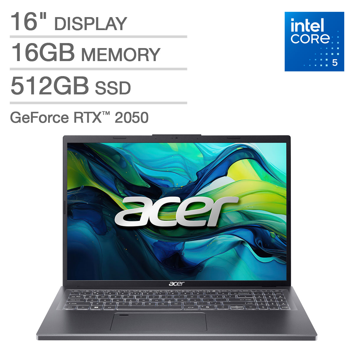 Acer Aspire 16” Laptop – Intel Core 5 120U – GeForce RTX 2050 - 1200p – Windows 11