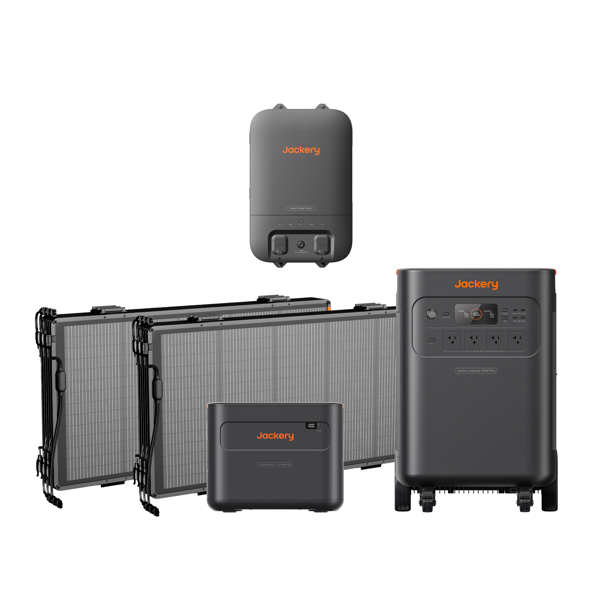 Jackery, founded in California in 2012 with the vision of offering green energy to everyone, everywhere, has emerged as a trailblazer in the solar generator sector and a globally renowned top-seller. With the support of over 4 million users and the endorsement of 200 authoritative media and organizations worldwide, Jackery has solidified its reputation as a reliable industry leader. Introducing Jackery's comprehensive backup solution for emergency preparedness: the ultimate bundle featuring the Explorer 5000 Plus, Battery Pack 5000 Plus, two SolarSaga 500X solar panels, and a Smart Transfer Switch. This smart home backup power kit serves as a residential hub, offering efficient energy management, outage protection, and cost-saving benefits.