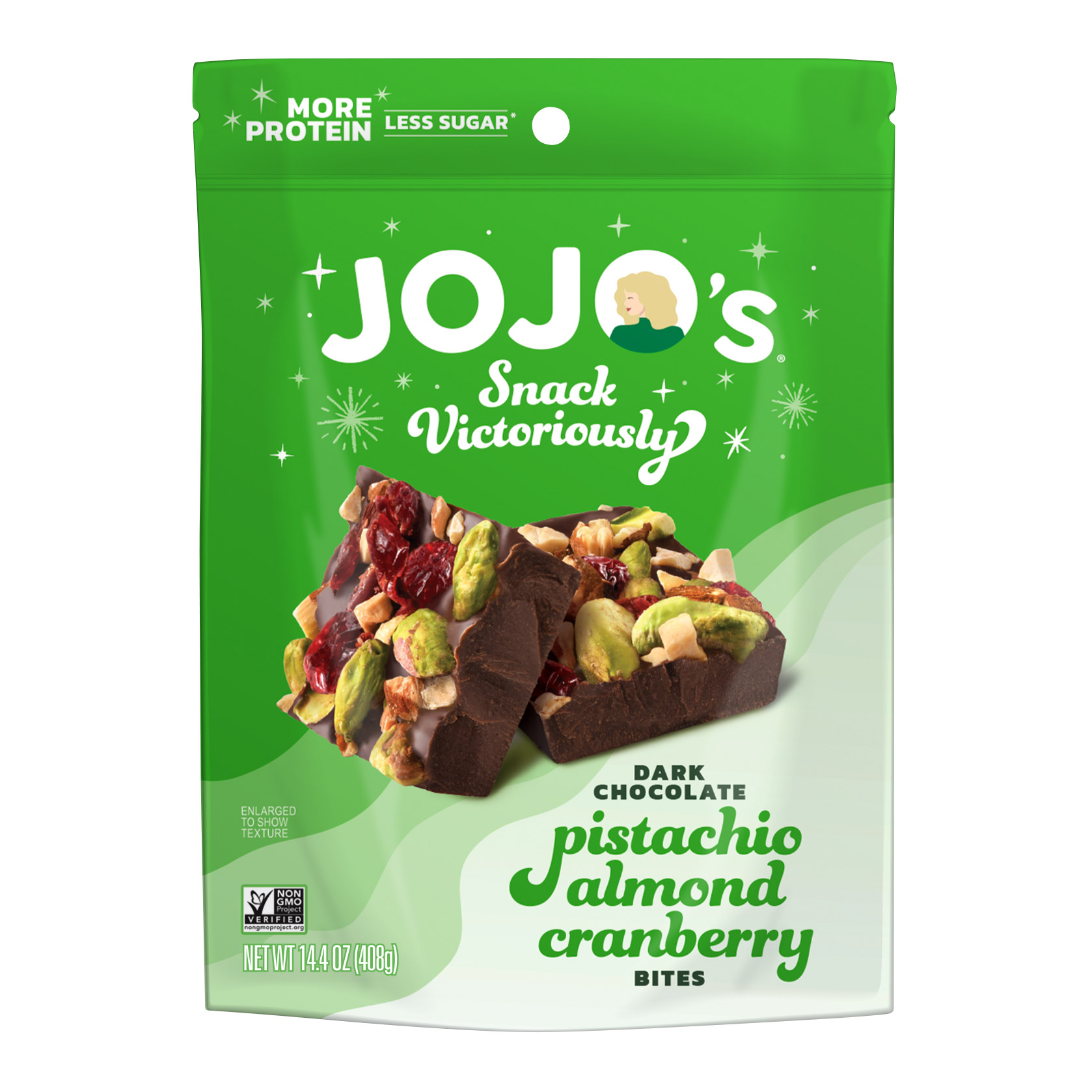 Jojo's Dark Chocolate Pistachio Almond Cranberry Bites, 14.4 oz