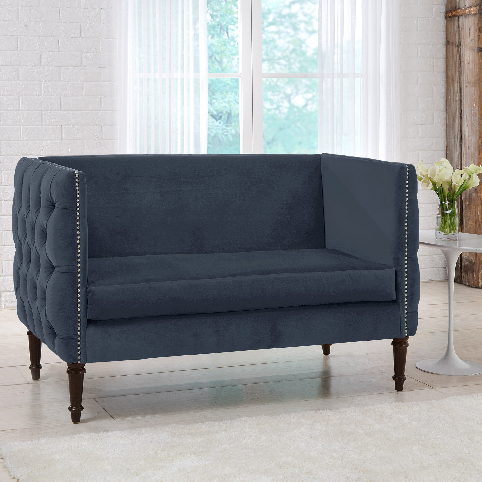 This loveseat speaks fashion with its beautiful detailing. It features soft velvet upholstery along with handcrafted diamond tufts and it is finished with a gorgeous nail button trim. Perfect for your sitting room or bedroom.