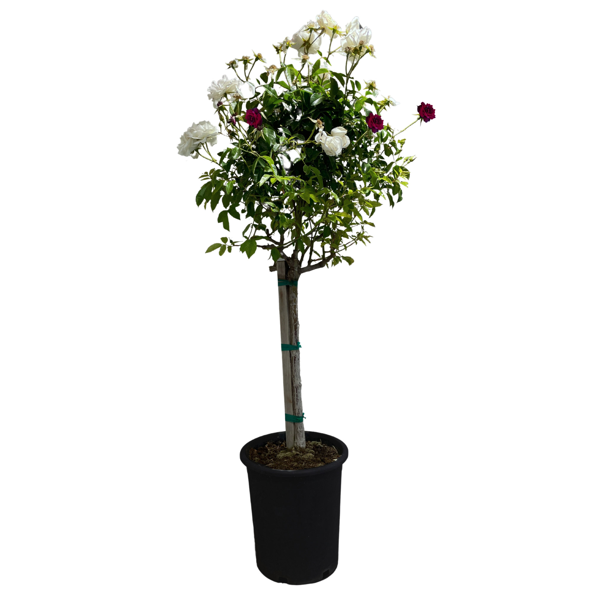 Iceberg roses are famously known for being a prolific repeat bloomer all summer long. Now available in a unique patio tree style showcasing burgundy, pink and white blooms. Plant in ground or container for added height and color to your garden.
