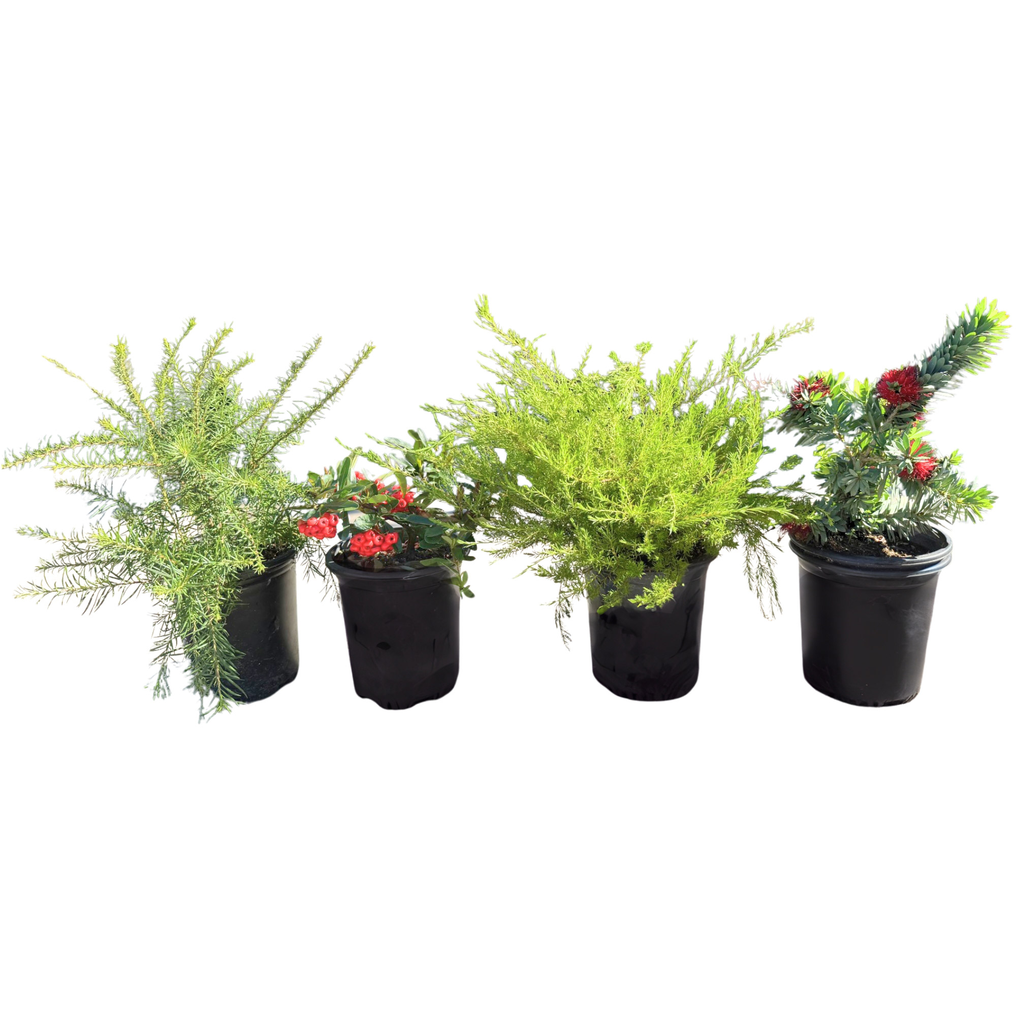 A curated 4-pack of beautifully coordinated plants designed to thrive together in a single container. Each variety complements the others in color, texture, and form—creating a balanced, eye-catching display perfect for brightening your front porch or patio. Simply plant, water, and enjoy Christmas season charm!