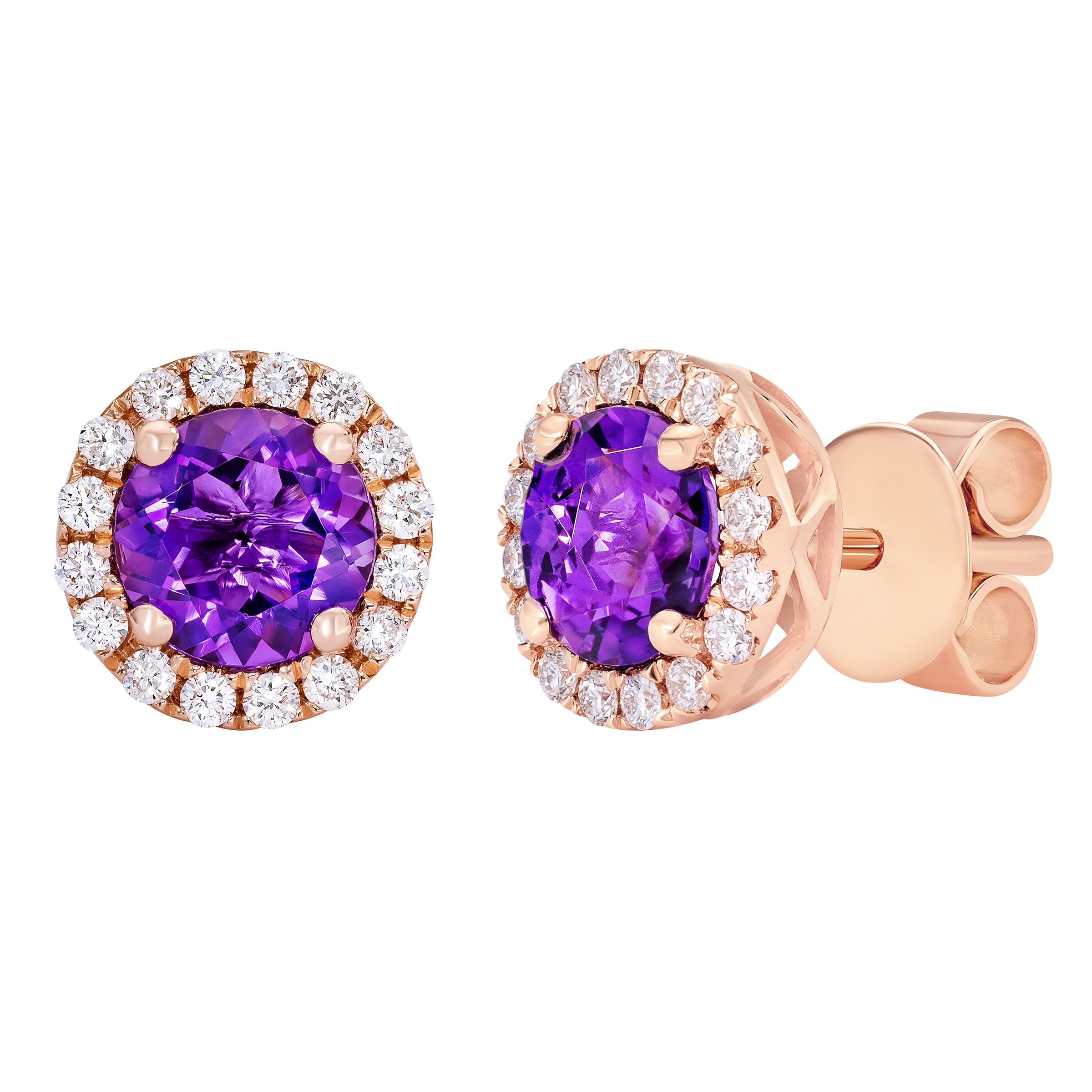 Amethyst and Diamond 14kt Rose Gold Earrings
