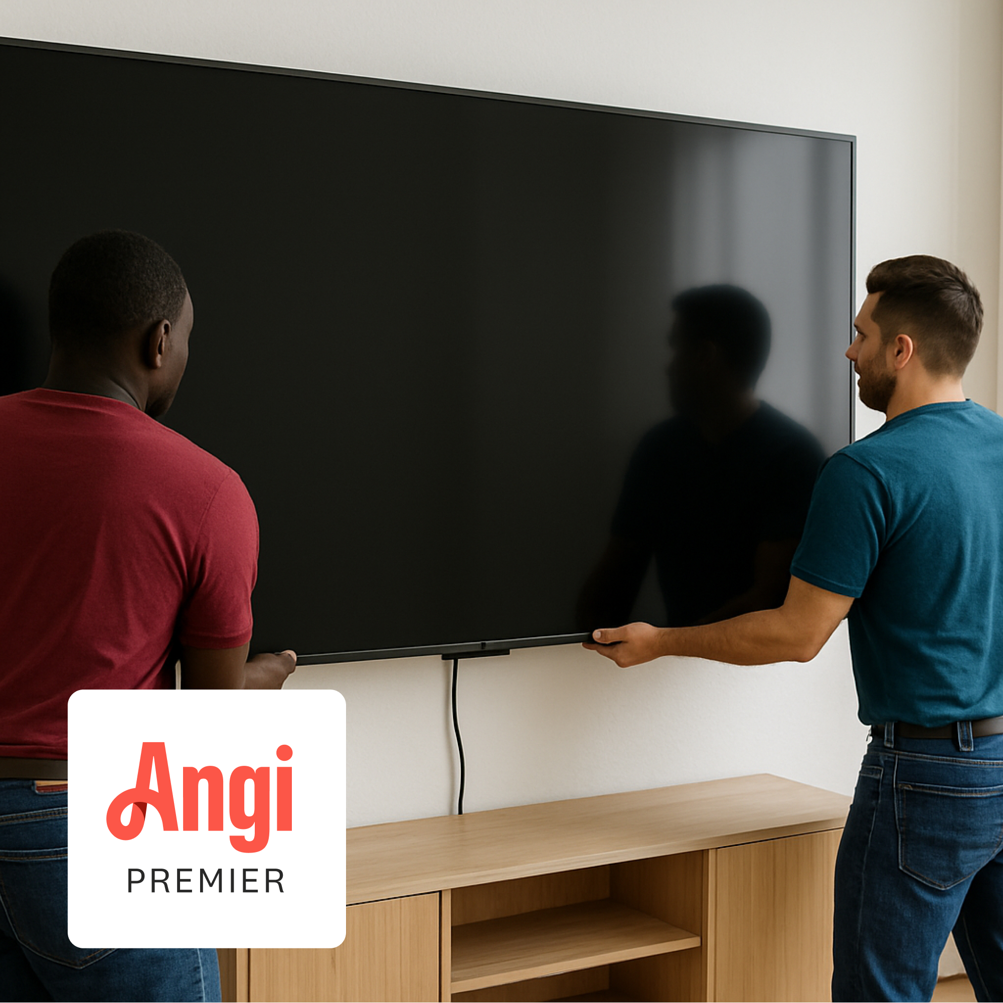 - Two (2) Pros will Mount a TV, 65” or larger to any wall excluding tile (e.g. drywall, brick, concrete, wood, etc.)