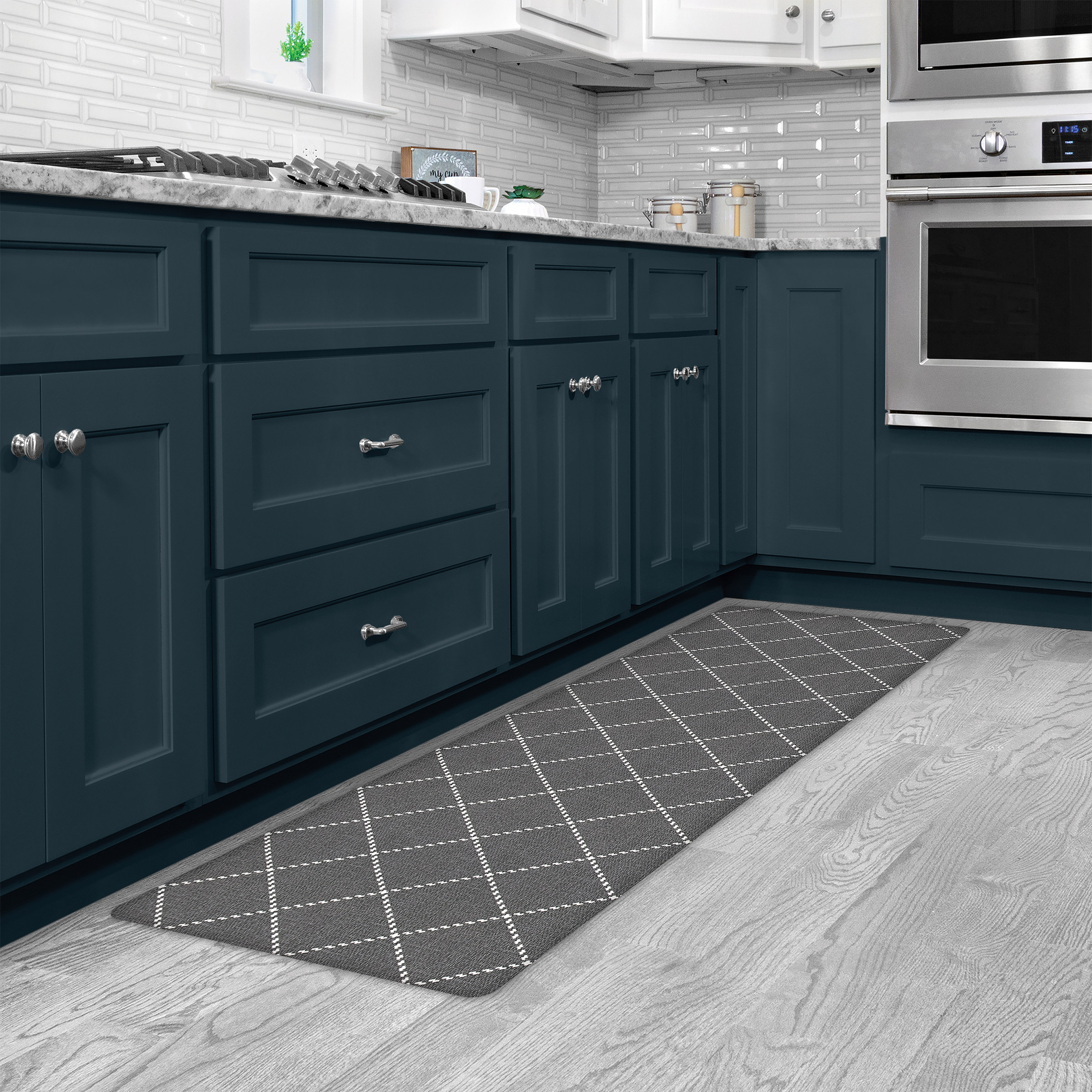 Add extra comfort to any kitchen or laundry room with this Extra-Large Kitchen Runner. Featuring designs that are sure to complement any décor in the home. The thick foam helps to provide warmth against cold tile and hardwood floors when cooking, cleaning, or standing. The stain resistant surface is easy to clean, simply wipe clean with mild soap and water.