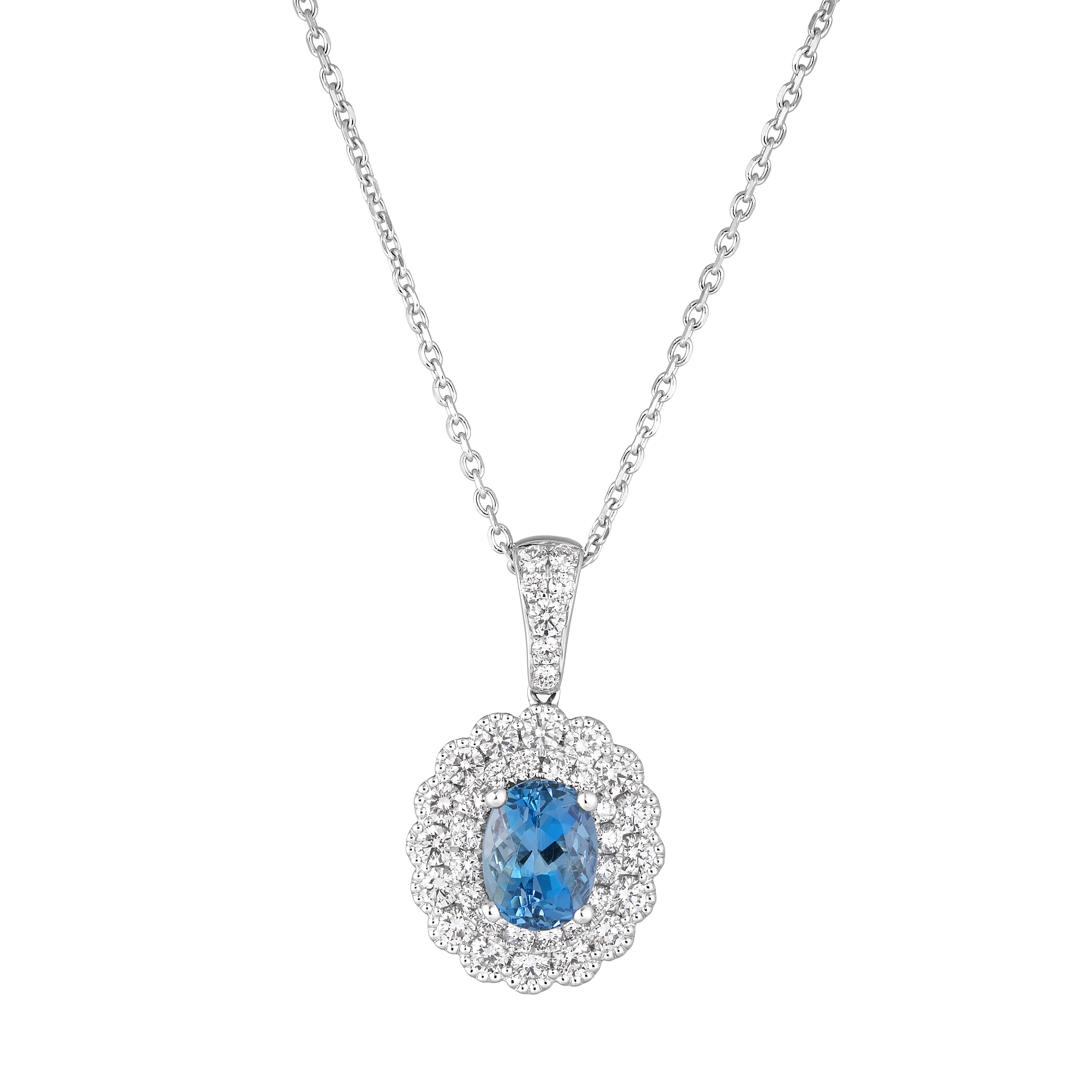 Aquamarine & Diamond 14kt White Gold Pendant