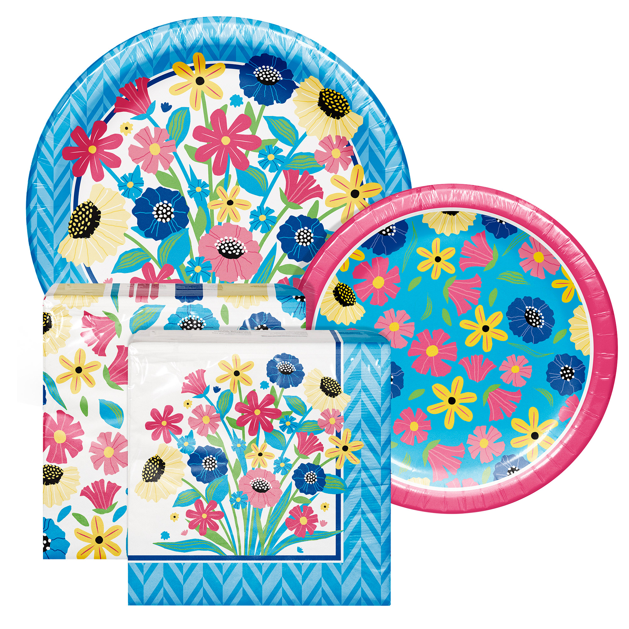 Add a pop of color to the table with our Bouquet of Beauty Spring Party Supplies Kit, 200 ct. Featuring a colorful spring flower design, these 10" Performa paper plates deliver strength and style for extra helpings of your favorite dishes; the 7” plates feature a coordinating floral design and are perfect for dessert or appetizers; and the 3-ply paper napkins feature a bright floral design for a fresh spring look. Each kit serves 50 guests and makes cleanup a breeze. Each plate is microwave safe and cut resistant making them ideal for spring celebrations. Grab your spring disposable dinnerware today!