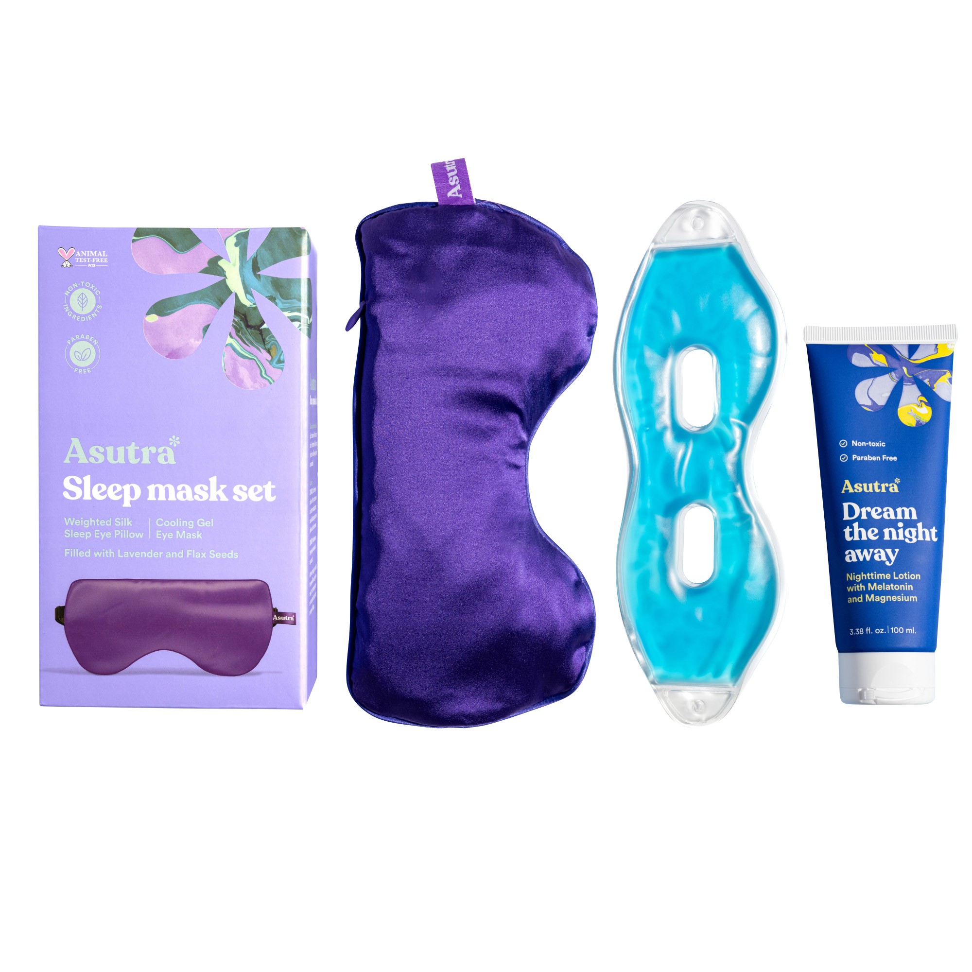 Asutra’s best selling sleep lotion and silk weighted sleep mask combined in an amazing bundle! Get the best rest with Asutra’s clinically proven Dream the Night Away Melatonin Lotion with Magnesium and Oprah and Venus Williams’ favorite Silk Sleep Mask.