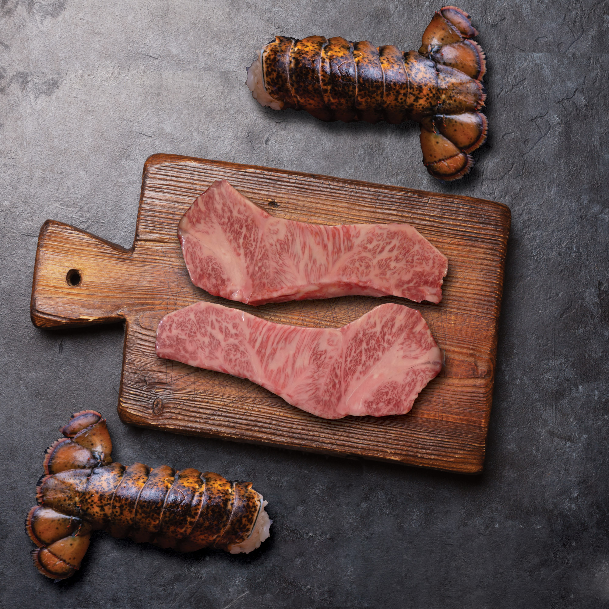 Due to the perishable nature of this item orders do NOT ship over the weekend. Orders will only ship Monday, Tuesday & Wednesday for Wednesday, Thursday, Friday Delivery. Orders placed after 11:00 am PST on Wednesday will not ship until the following Monday. If you're looking for a luxurious and indulgent meal, look no further than our Japanese A5 Wagyu Petite Striploin & Cold Water Lobster Tail Surf & Turf bundle. This bundle includes two 13 oz. Japanese A5 Wagyu Petite Striploin Steaks and two 17-20 oz Cold Water Caught Lobster Tails from the North Atlantic. Our Wagyu is imported directly from Japan, sourced from trusted farms, and expertly-curated to bring you the most exquisite, most sought-after beef on the planet. Our Lobster Tails are wild-caught and flash-frozen to preserve their freshness and flavor. Enjoy the contrast of the rich, buttery Wagyu and the sweet, succulent Lobster in this ultimate surf and turf experience.