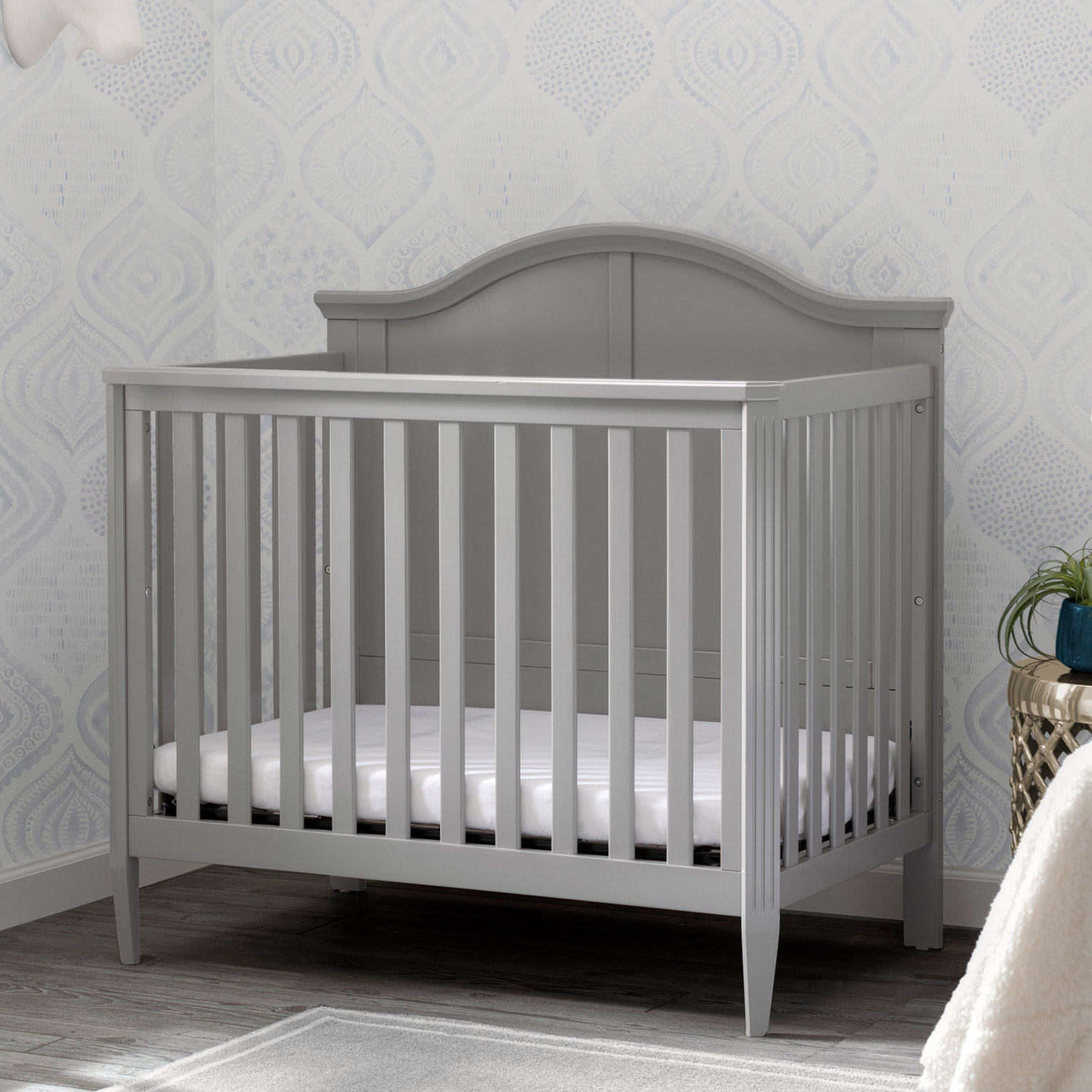 The Bailey Mini-Crib offers a classic look in the ideal size for smaller nurseries, without skimping on style, safety, or comfort. Great for use in small homes, apartments, second homes, parent’s bedroom, grandparent’s house, military quarters, etc. The two-position metal mattress support system allows you to lower the mattress height as your baby begins to sit or stand. Crib converts into a twin bed when your child is ready (twin conversion rails sold separately).