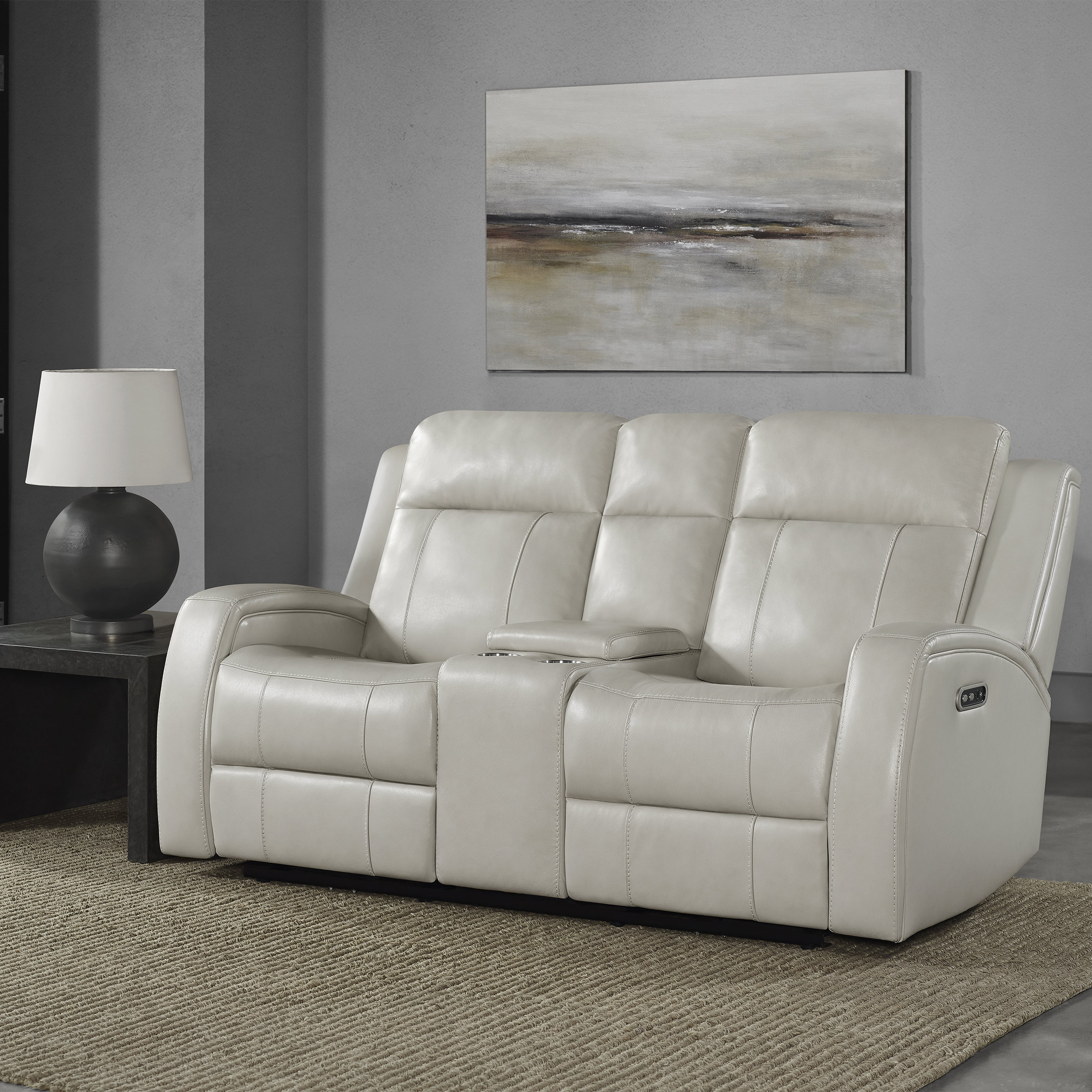 Add comfort to your space with the Barcalounger Power Reclining Loveseat with Power Headrests that offers quality features in construction, leather and styling. The plush cream top grain leather adorns all seating surfaces, offering a smooth feel to the touch. The seat cushions feature pocket coils and sinuous springs for the ultimate comfort. Enjoy the double power reclining feature, with a full chaise for complete leg support, two stainless steel cup holders and the ease of charging your phone or tablet using the built-in USB port.