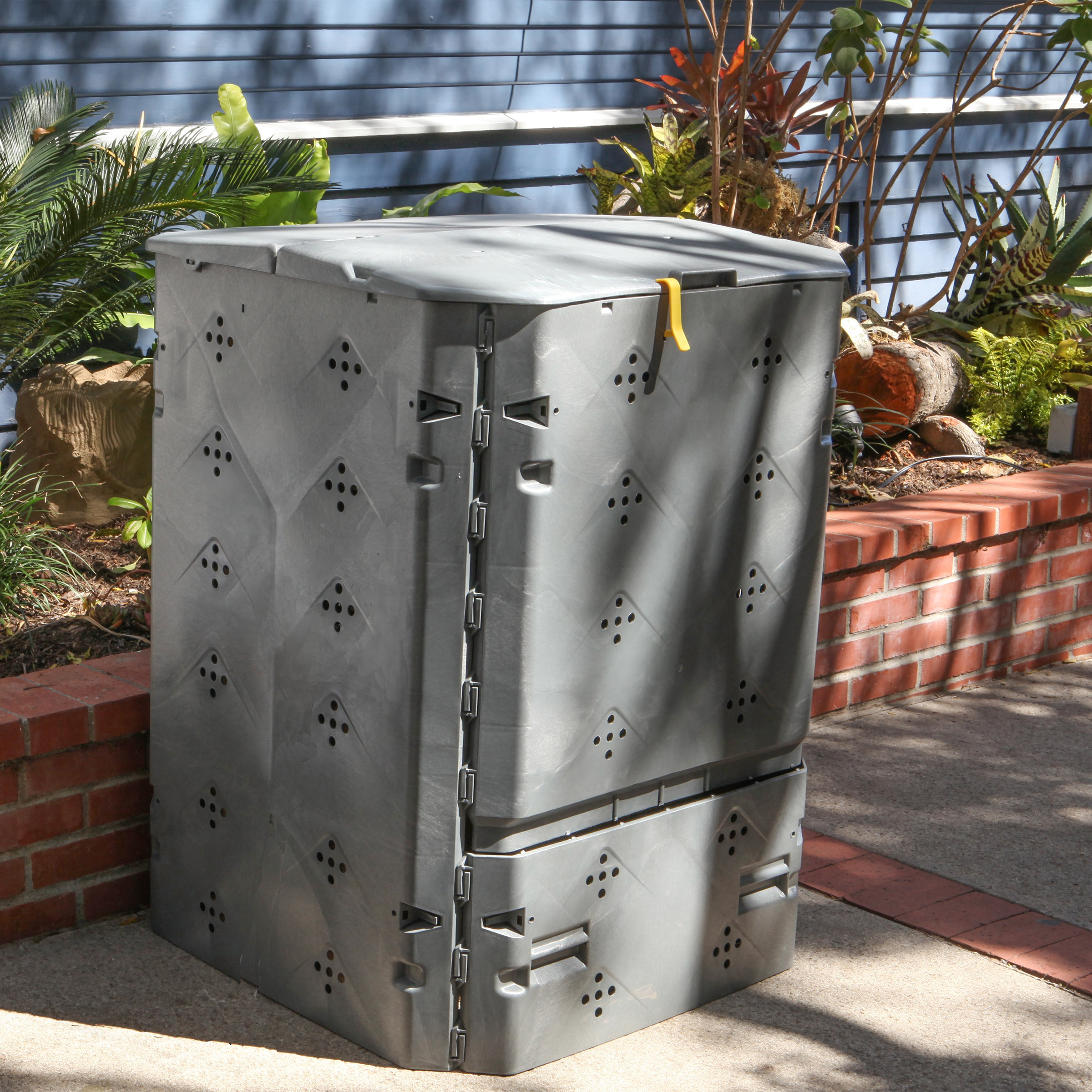 Developed in Europe, the BIO 600 composter features sophisticated aeration to assist in the organic decomposition process. Air holes on all four sides as well as inner integrated ‘ribs’ create channels of air at all times. Fresh oxygen is a critical factor in the breakdown of plant matter, as it increases aerobic microbes and greatly decreases the anaerobic bacteria that can give off odors. Aerobic microbial bacteria give off a rich scent much like you might smell deep in the forest. The Bio 600 Composter comes with a rugged base grid and locking lid to keep pests out.