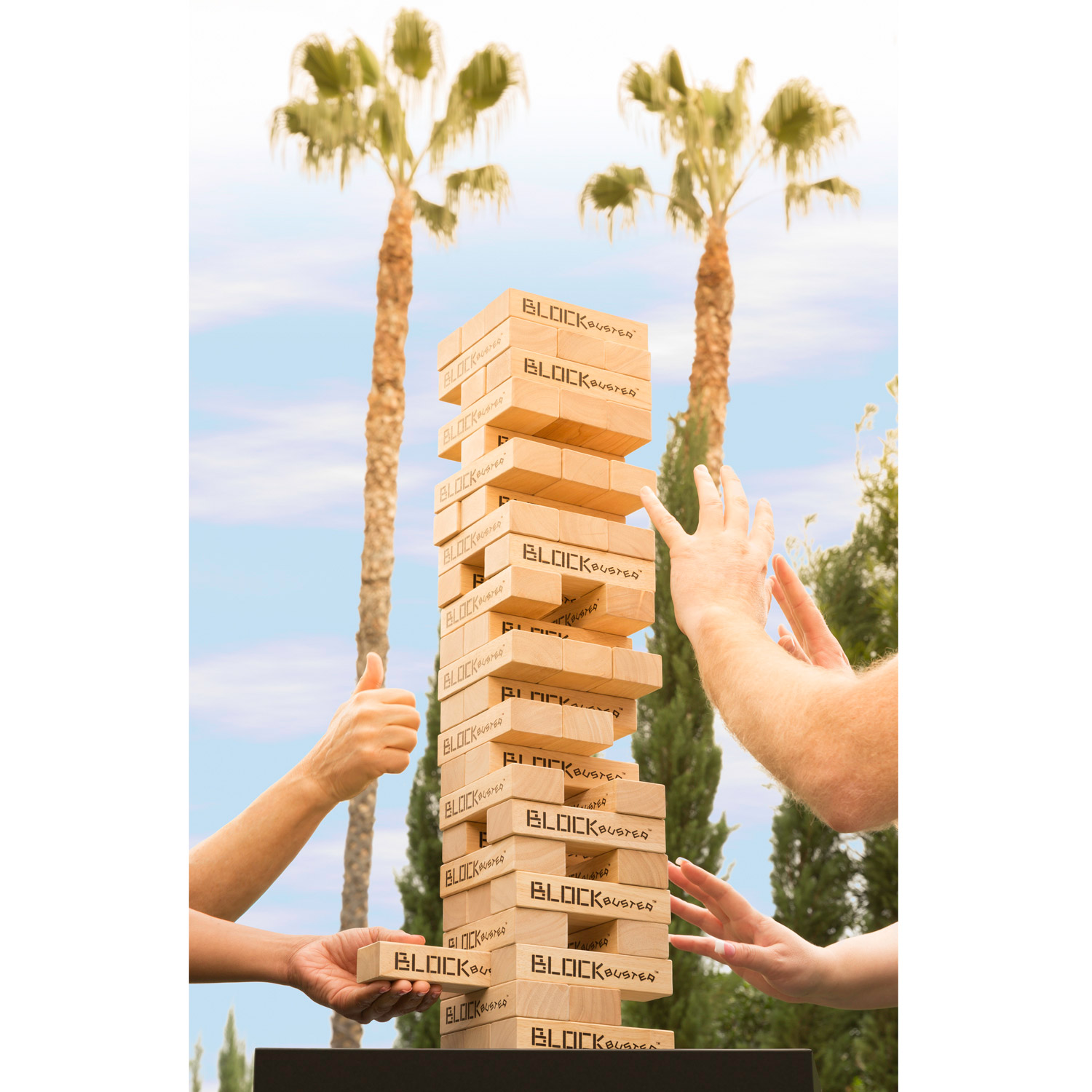 You’ve got to risk it all to get to the top! HUGE blocks mean you can build a teetering tower more than 4 feet tall. But be careful: The bigger the build, the harder the fall! Blocks are sanded smooth and cut from premium hardwood. Includes a carrying bag. Features: