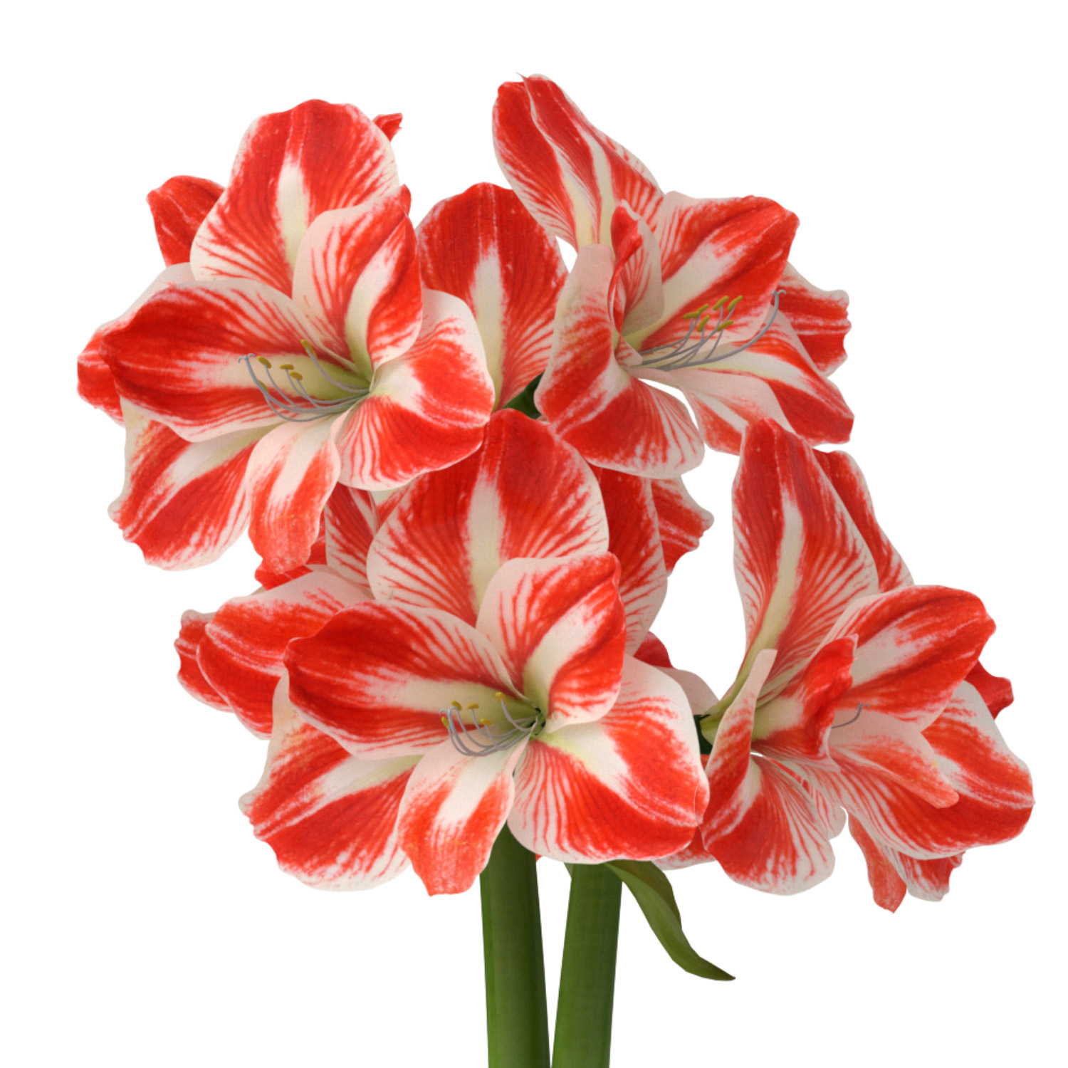 One of the most eye catching and popular in the amaryllis family, Minerva is loved for its brilliant, cherry red blooms with a pure white star in the center and a luminous, lime green throat. Amaryllis bulbs are tropical plants and grow best in warm temperatures. If you are purchasing these raw bulbs after any seasonal frost is likely, they can be planted straight into the garden or into a planter to keep on your veranda for example. If there is any danger of frost, bring pot indoors. Plant bulbs in soil leaving the top half of the bulb exposed. Water bulbs sparingly but regularly. Growth will start to appear 4-5 weeks after purchase. These bulbs will grow at least two stems, producing multiple double red blooms per stem over the next 4-12 weeks. Trim withered blooms to promote further growth.