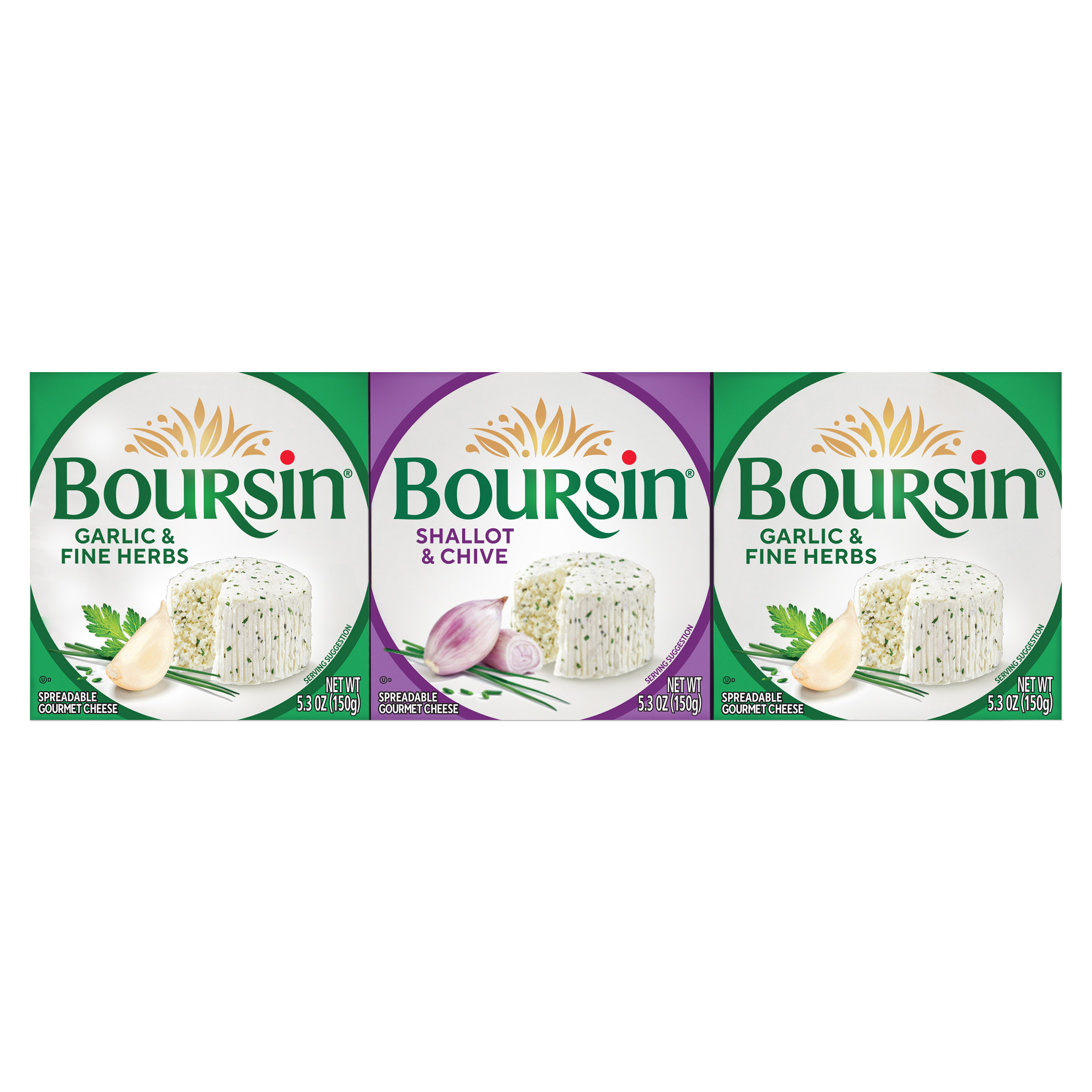 Boursin Garlic & Fine Herbs + Shallot & Chive, Gourmet Cheese, 5.3 oz, 3-count
