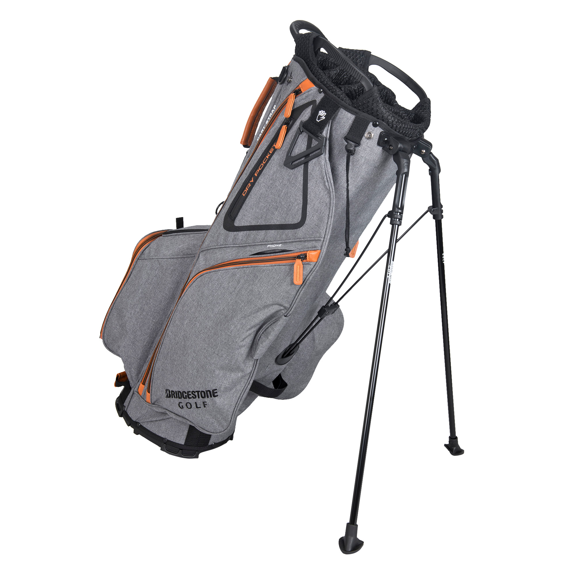 Bridgestone Premium stand bag has 6 pockets including a dry pocket for your valuables. Backpack style shoulder straps for ease of use when carrying. Removable front ball pocket.