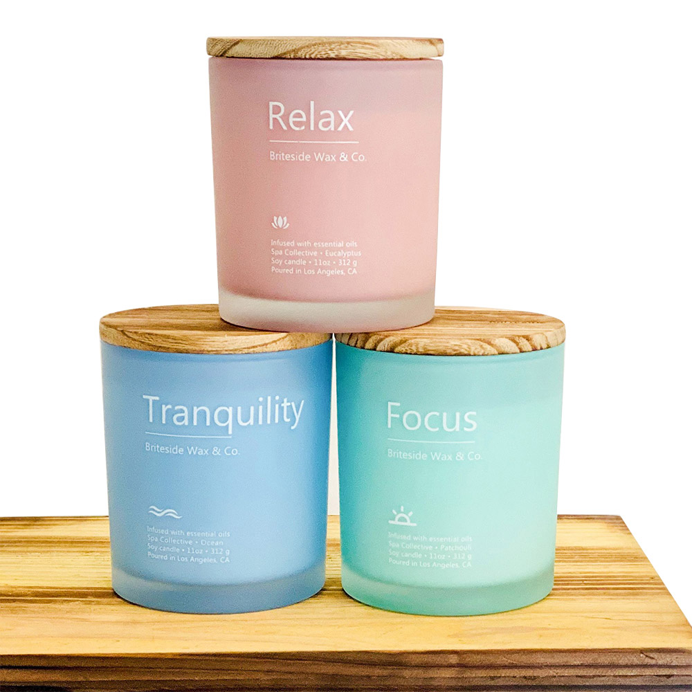 - (3) 11oz wellness inspired fragranced soy blend candles