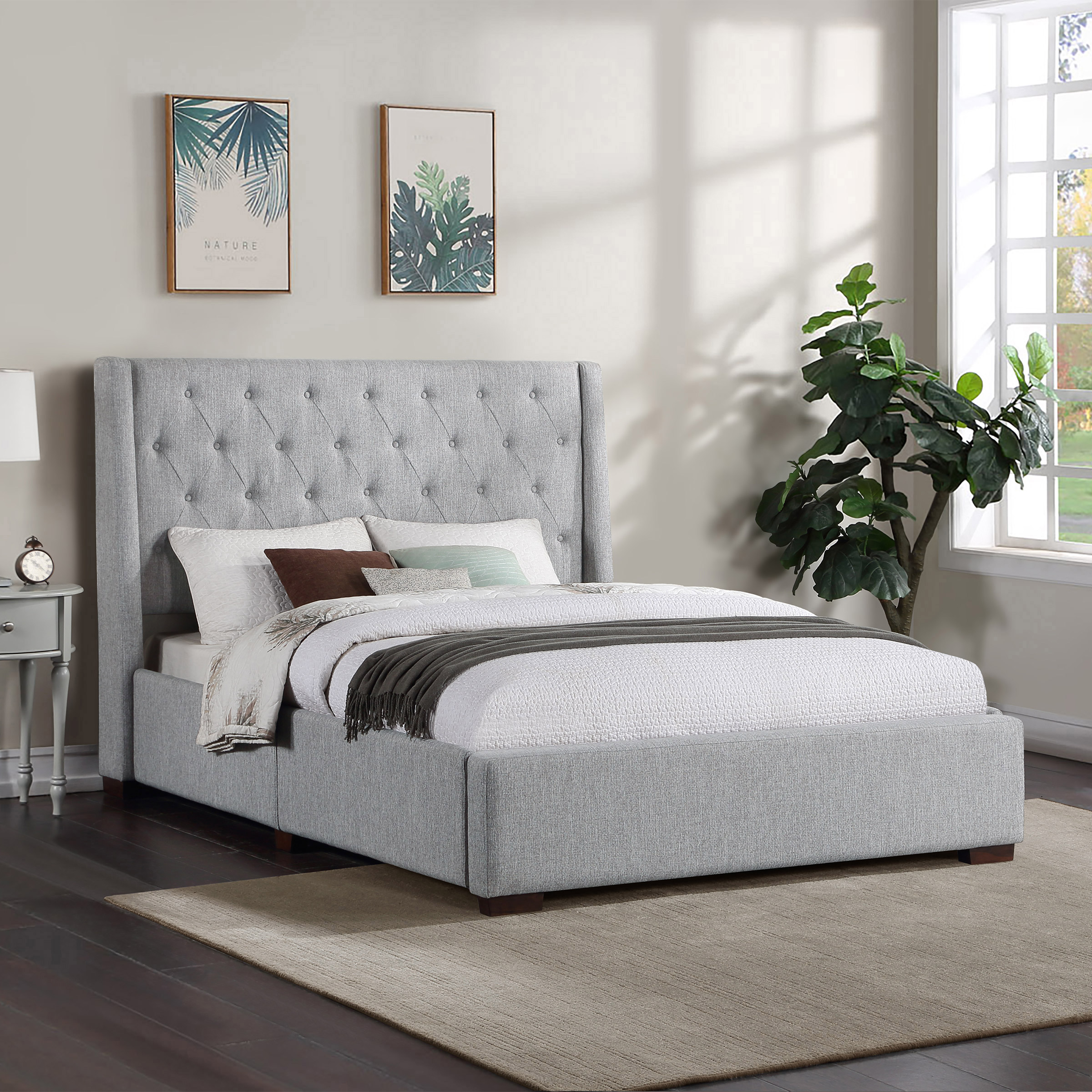 Bring relaxed, elegant style to your bedroom with the Brynn Upholstered Bed. Thoughtfully crafted in a rich polyester, the clean silhouette of the headboard creates a sophisticated backdrop with its button tufting, while the gray color works well with a variety of bedding styles. The matching, fully upholstered footboard and side rails feature a collapsible design, making this bed easy to ship, move and assemble. The Brynn is both versatile and stylish.