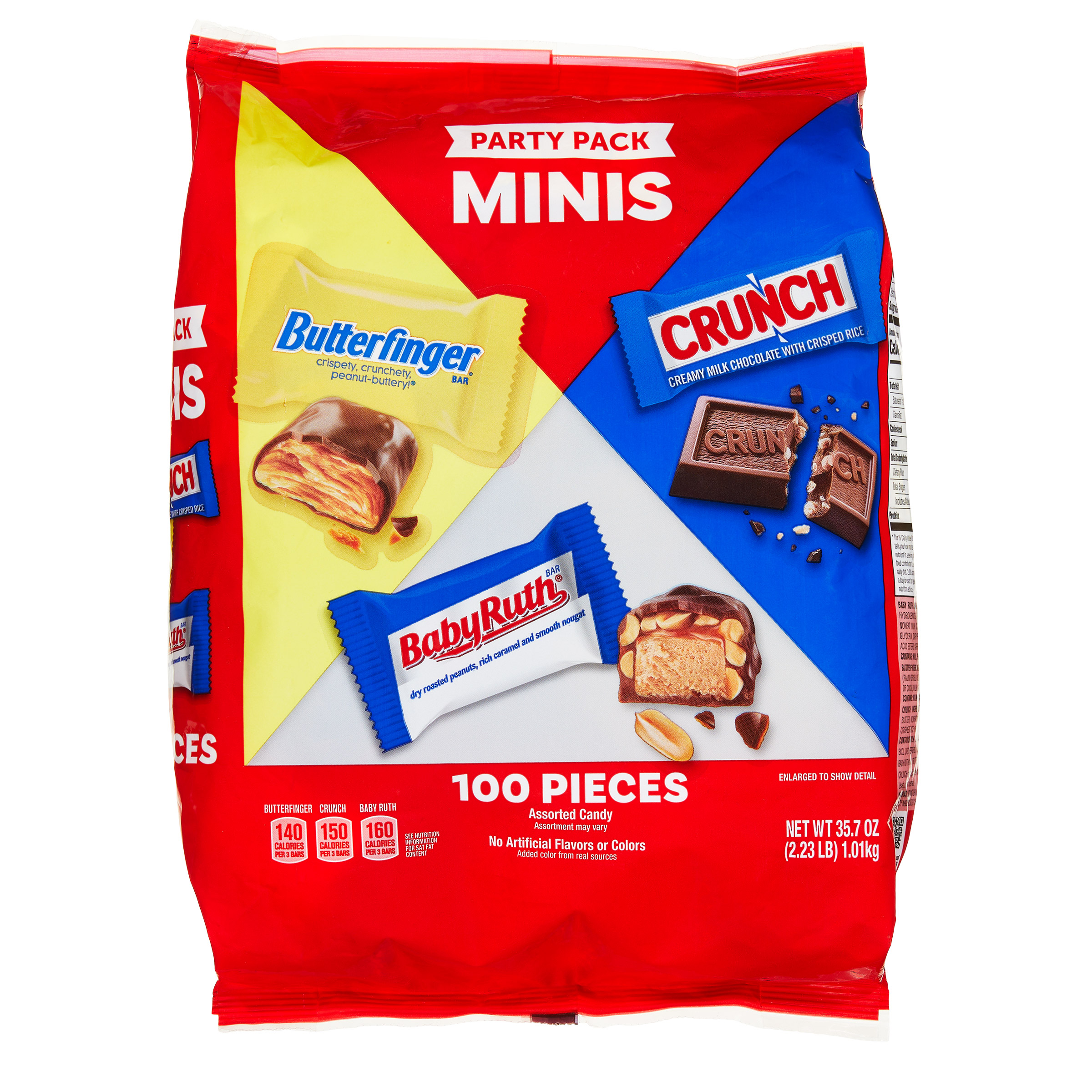 Butterfinger, Crunch, Baby Ruth Minis Chocolate Candy, Variety Pack, 100-count, 35.7 oz bag