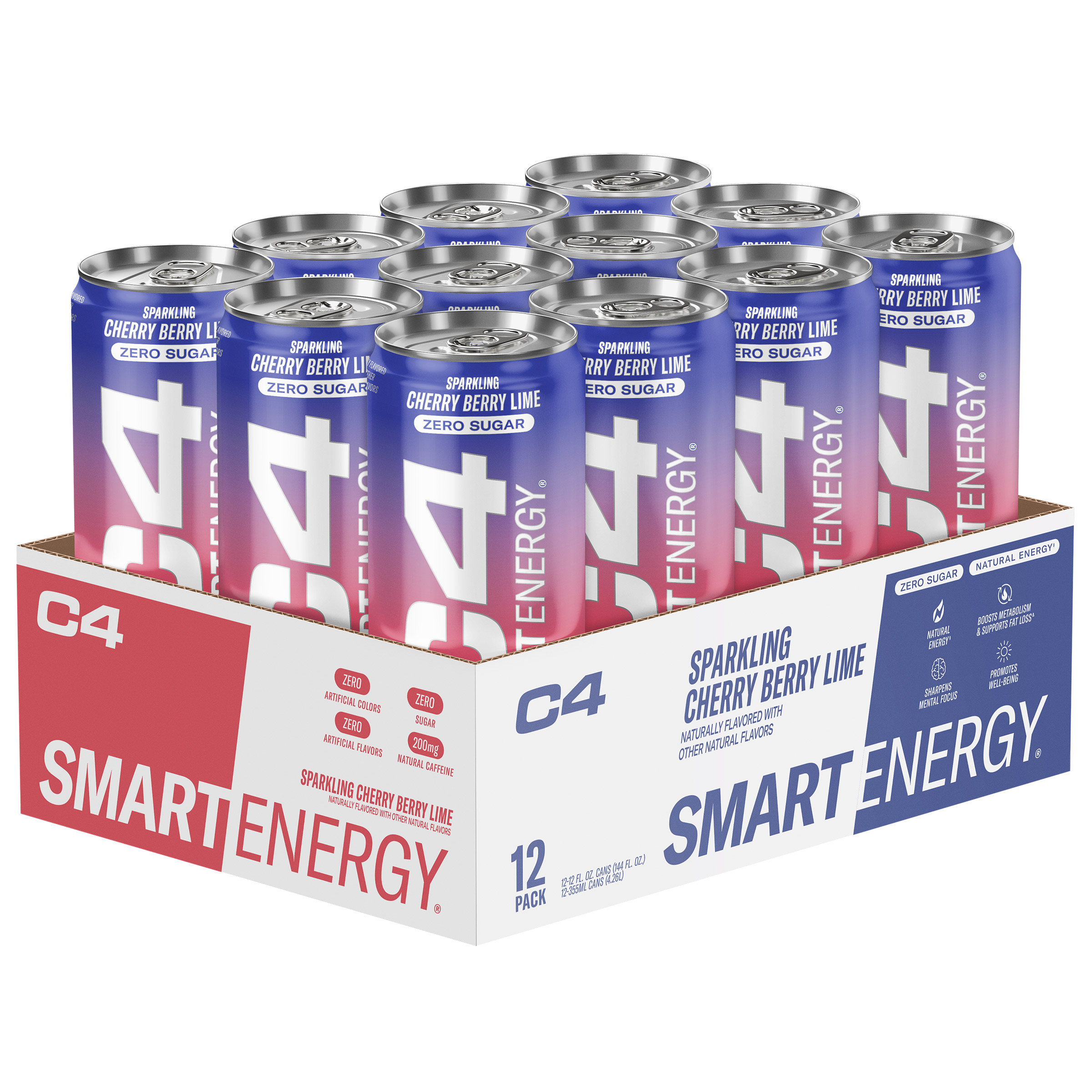 C4 Smart Energy Drink, Cherry Berry Lime, 12 fl oz, 12-count