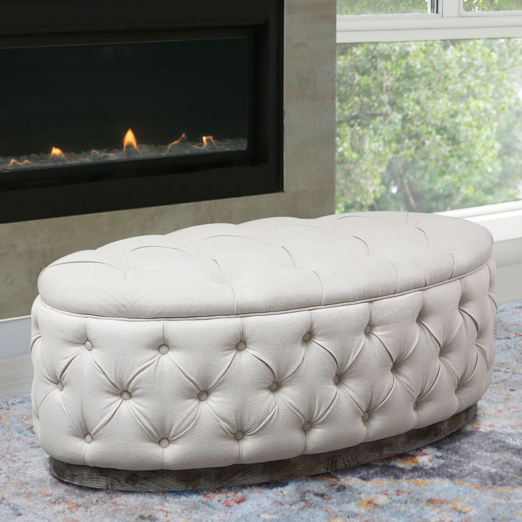 Where classic tradition meets designer style – the Callen Tufted Ottoman by Abbyson is a great addition to your favorite room. With dramatic curves and tufting on all sides, this ottoman makes a beautiful impact. Crafted in a durable, polyester & linen fabric over the high-density foam cushioning, with a kiln-dried hardwood frame makes it sturdy enough to use as a cozy extra seat or comfortable enough to put your feet up. Make the Callen Tufted Ottoman the perfect addition to your favorite room.