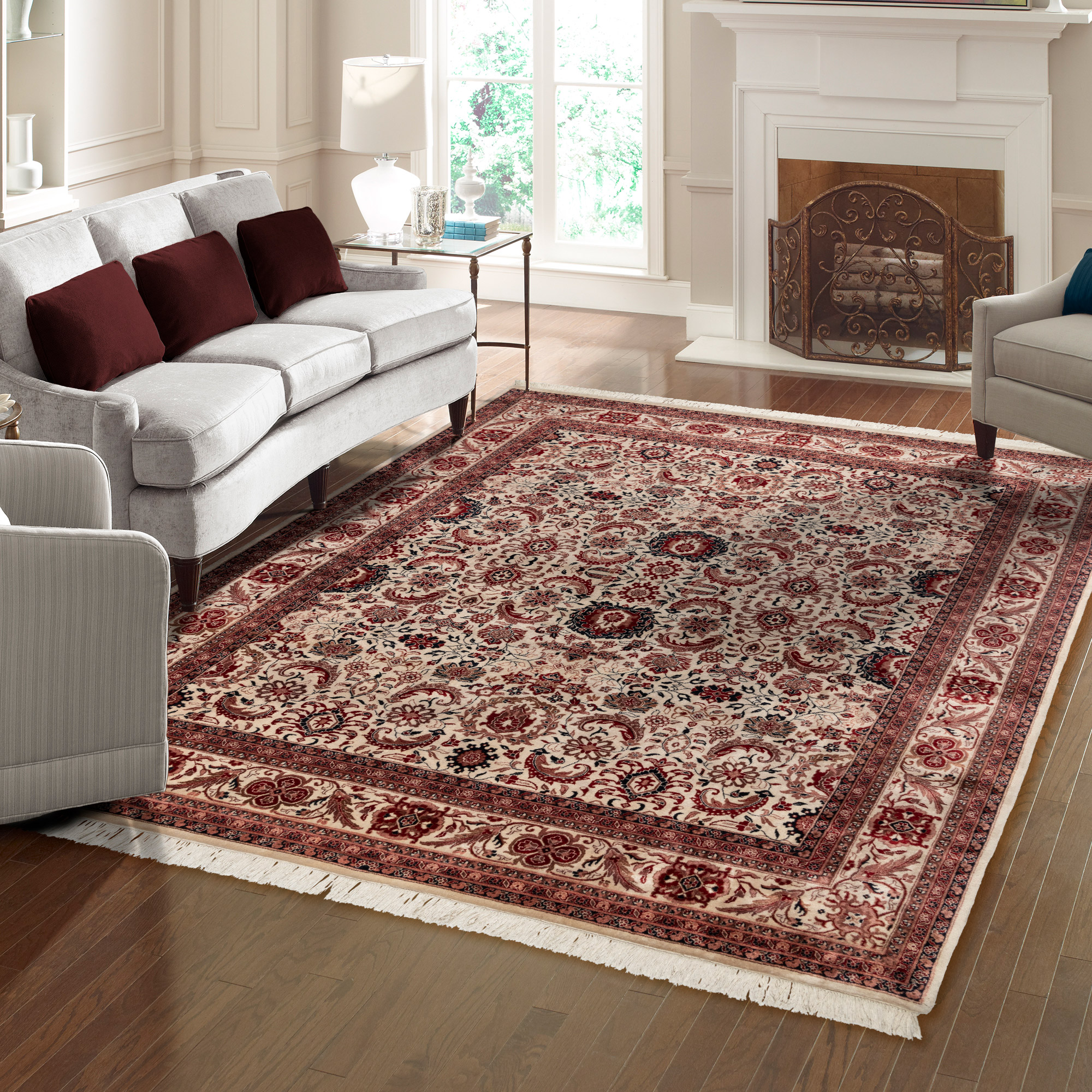 These rugs feature 100% long staple New Zealand wool pile with beautiful colors, elegant Persian-style design, and gorgeous luster. Each rug has its own story and was created by master craftsmen using centuries old techniques that have been passed down through generations. No two pieces are exactly identical. While all of the rugs within a collection will feature the same colors and designs, the nature of handmade rugs is such that each piece can have subtle differences which make them, literally, “one of a kind.” This is a unique feature of handmade carpets. These differences range from slight color variations to subtle differences in design and “scale” of the rug. These differences can be due to the hand knotting and yarn dyeing processes. Larger pieces will have more detail in the designs and smaller pieces will have design adjustments so that the pattern is suitable for the size of the rug.
