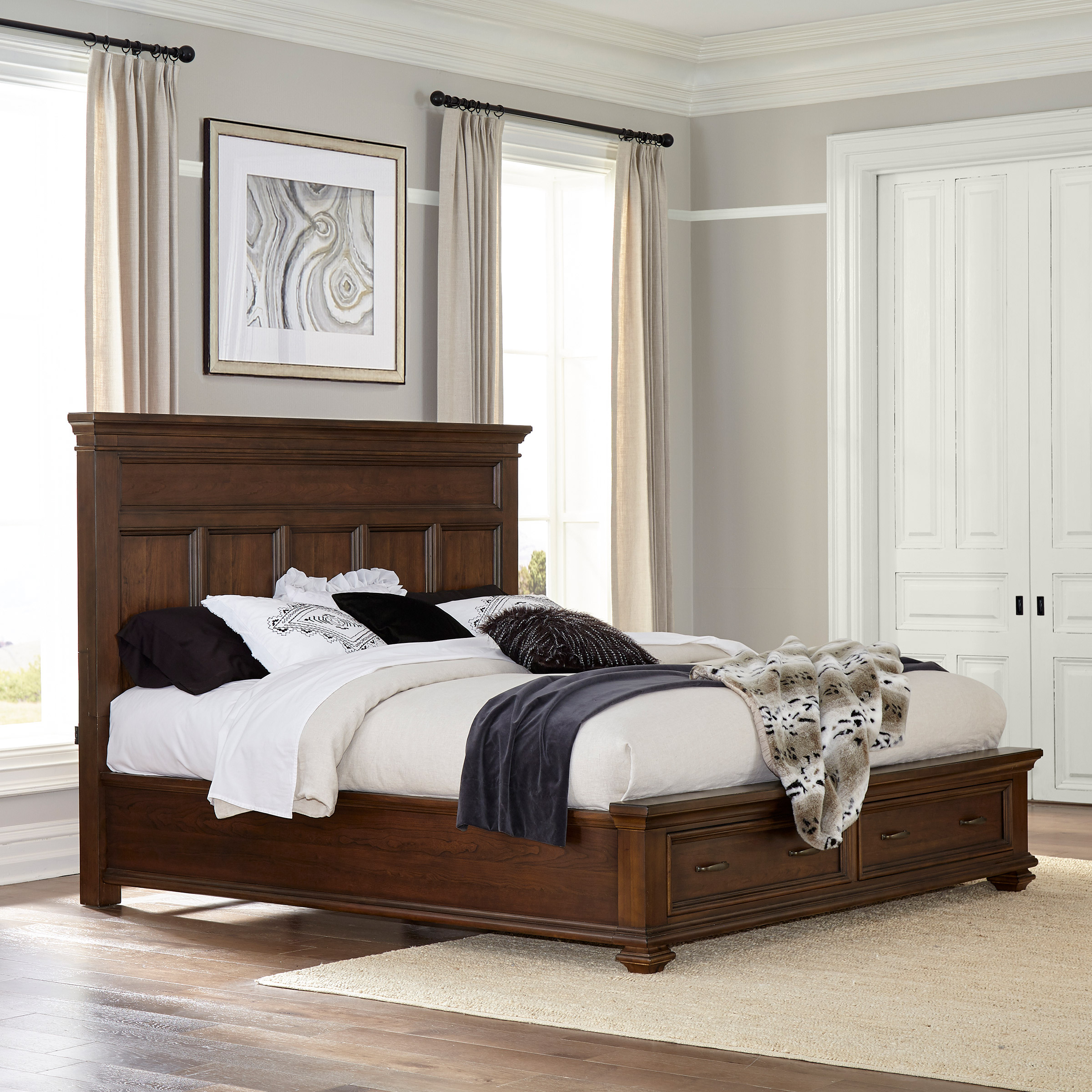Time honored design and clean lines complimented by a rich walnut finish, makes the Conner Collection a great choice for any bedroom. The King Bed features a panel headboard with detailed framing and 2 USB ports on either post. This platform bed offers 2 drawers in the footboard for storage. Each drawer features cedar-lined bottoms, Blum® premium, soft close drawer glides and English dovetail joints. Add traditional style and multi-feature pieces to your bedroom with the Conner Collection (additional pieces sold separately).