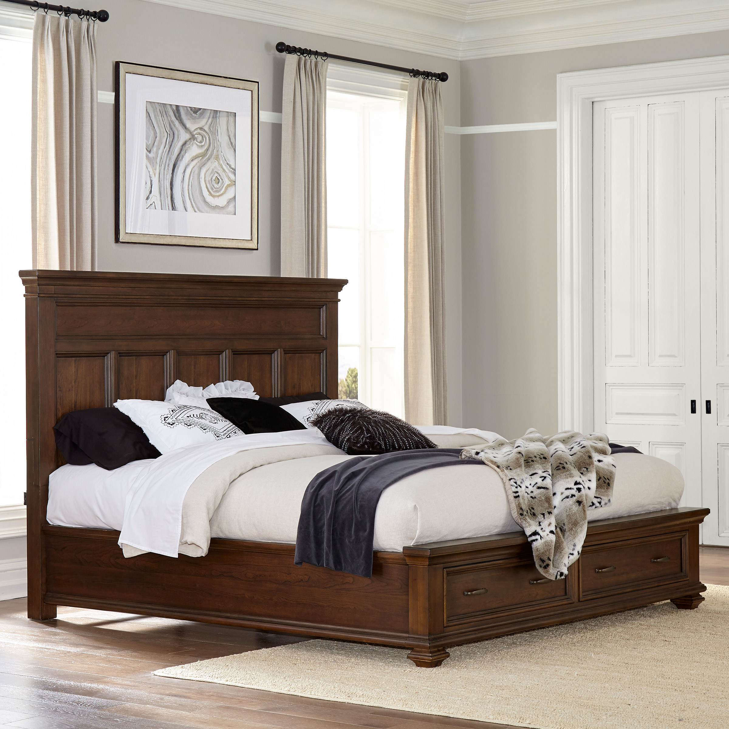 Time honored design and clean lines complimented by a rich walnut finish, makes the Conner Collection a great choice for any bedroom. The Queen Bed features a panel headboard with detailed framing and 2 USB ports on either post. This platform bed offers 2 drawers in the footboard for storage. Each drawer features cedar-lined bottoms, Blum® premium, soft close drawer glides and English dovetail joints. Add traditional style and multi-feature pieces to your bedroom with the Conner Collection (additional pieces sold separately). Features: