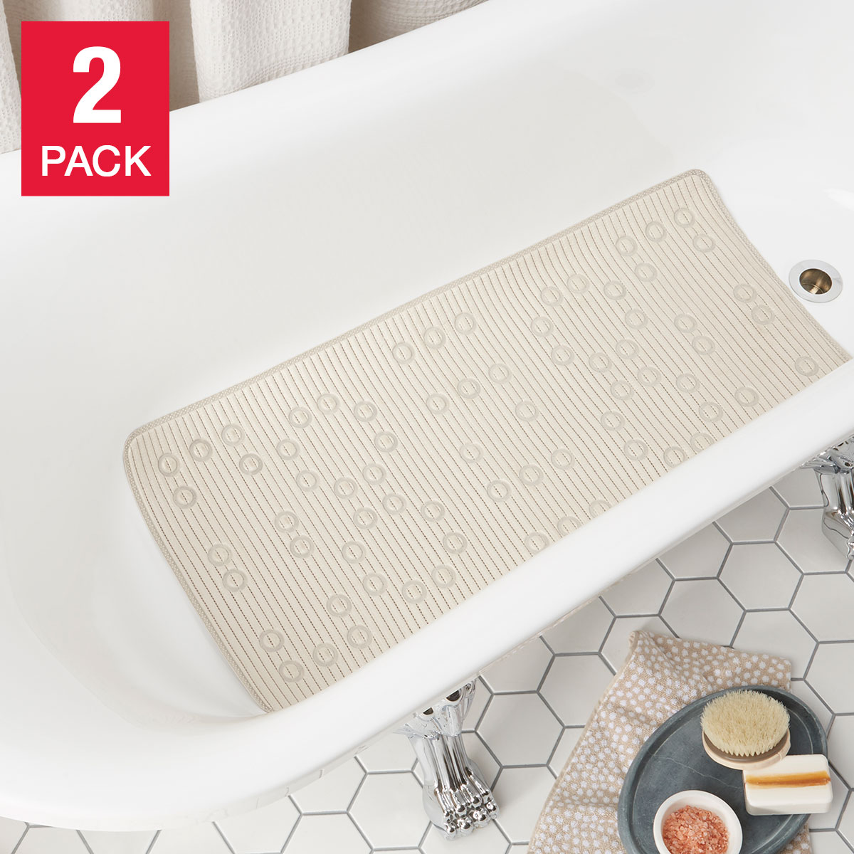 This CopperSpa™ Tub Mat uses the natural element copper to help protect against odor and mildew. The copper is enriched into the tub mat ensuring it will not wash out or under perform. This ultra-soft cushioned foam is easy on the feet but strong grip with over 70 suction cups. Even better, we've added a hanging loop to help dry your tub mat with ease when not in use.