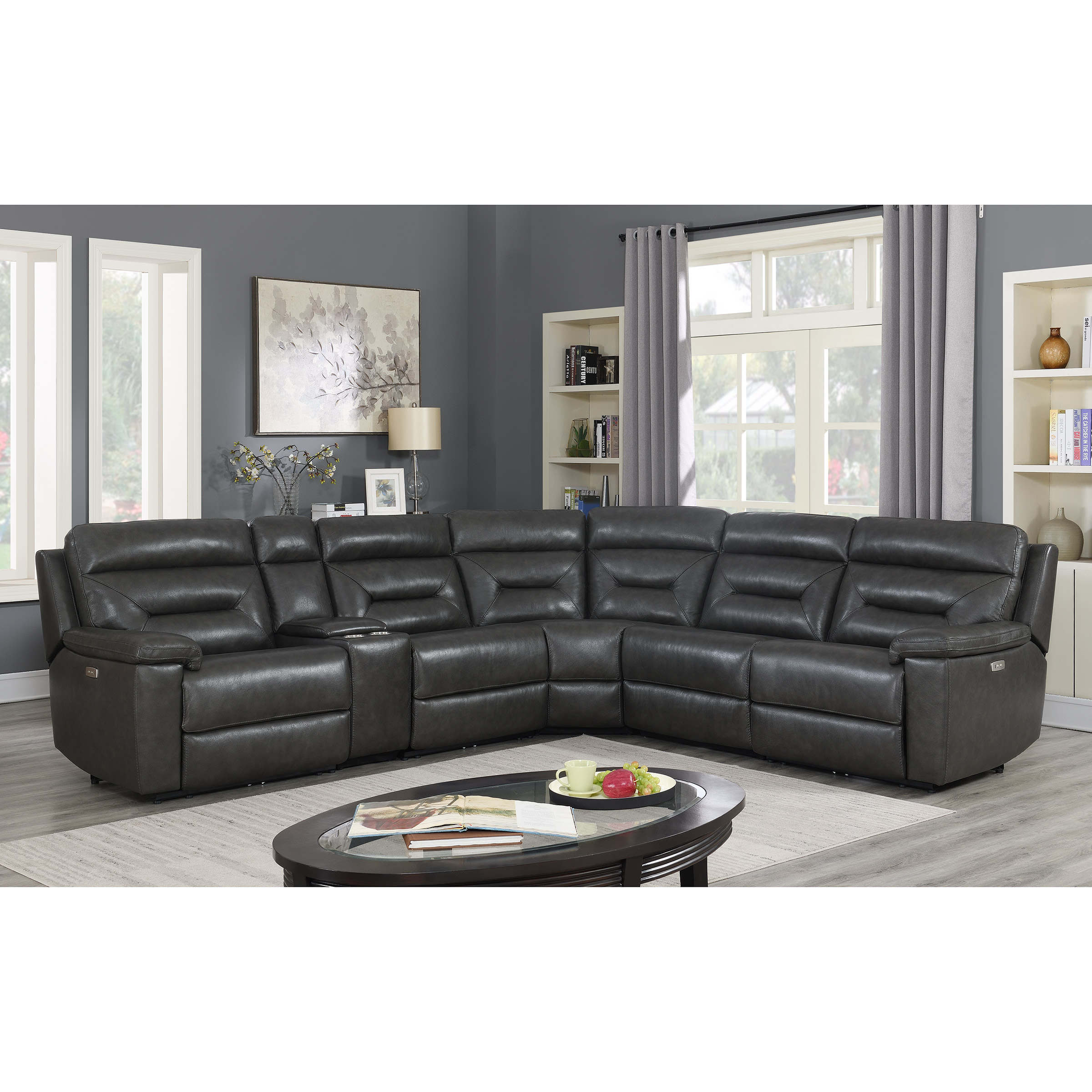 Corry 6-piece Leather Power Reclining Sectional Sofa, Gray
