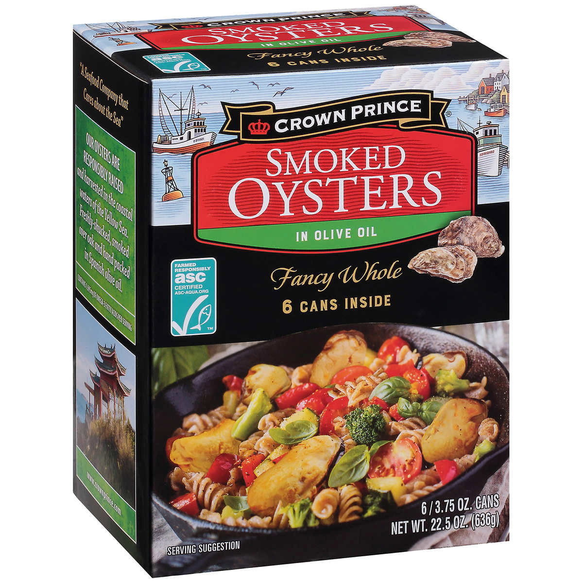 Crown Prince Smoked Oysters in Olive Oil, Fancy Whole, 3.75 oz, 6-count