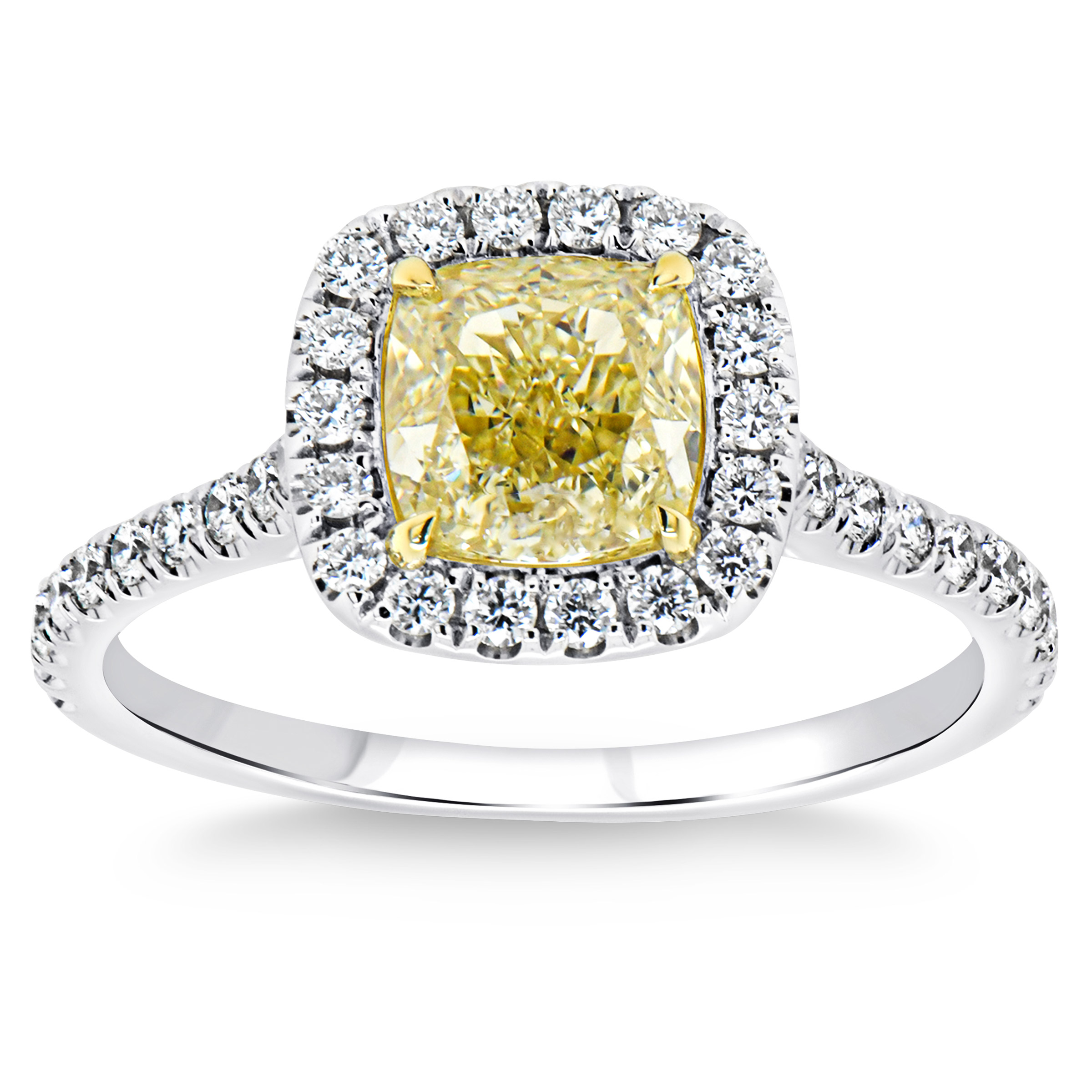 Cushion Cut 1.50 ct Center VS2 Clarity, Fancy Yellow Diamond Platinum Ring