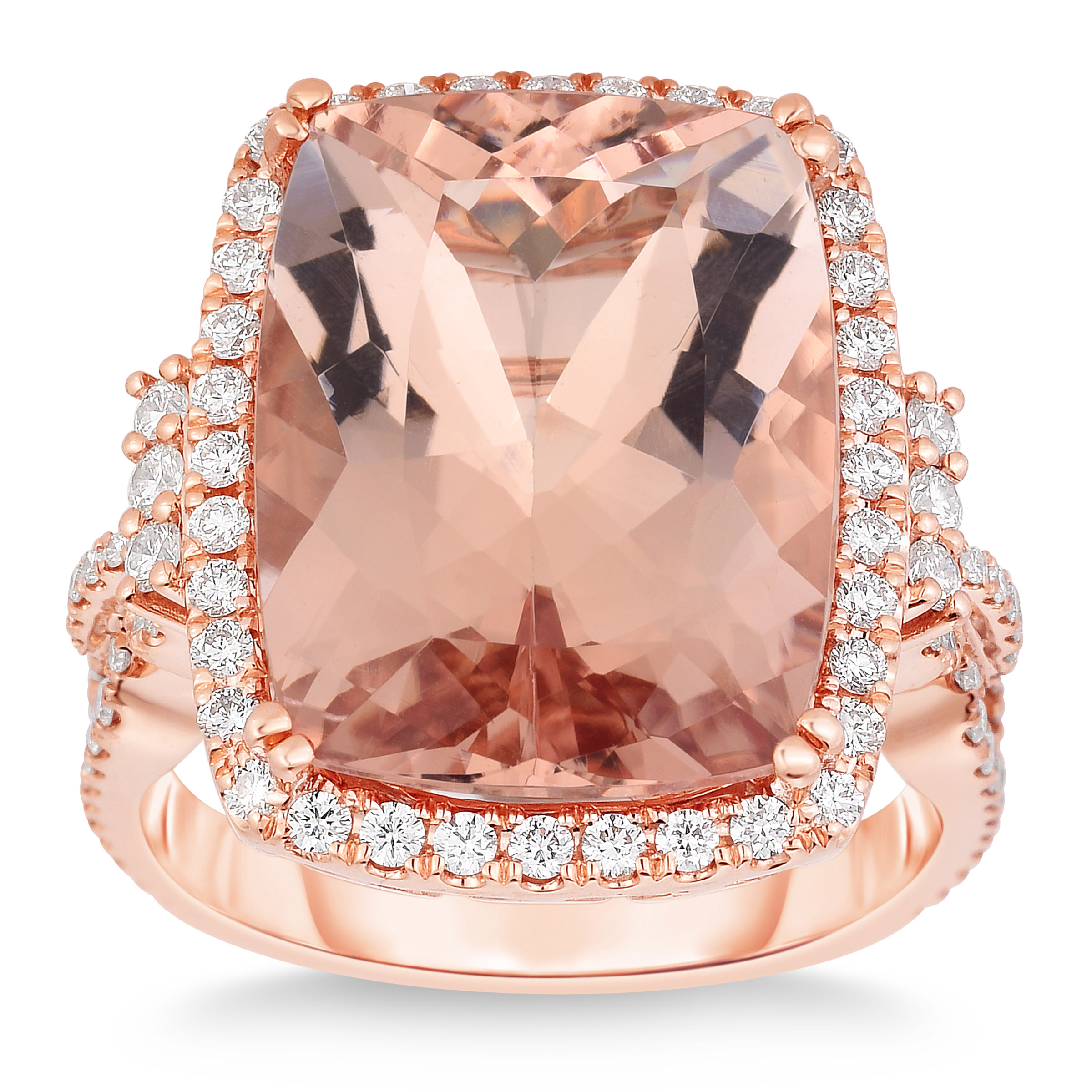 Cushion Cut Morganite & Diamond 14kt Rose Gold Halo Ring
