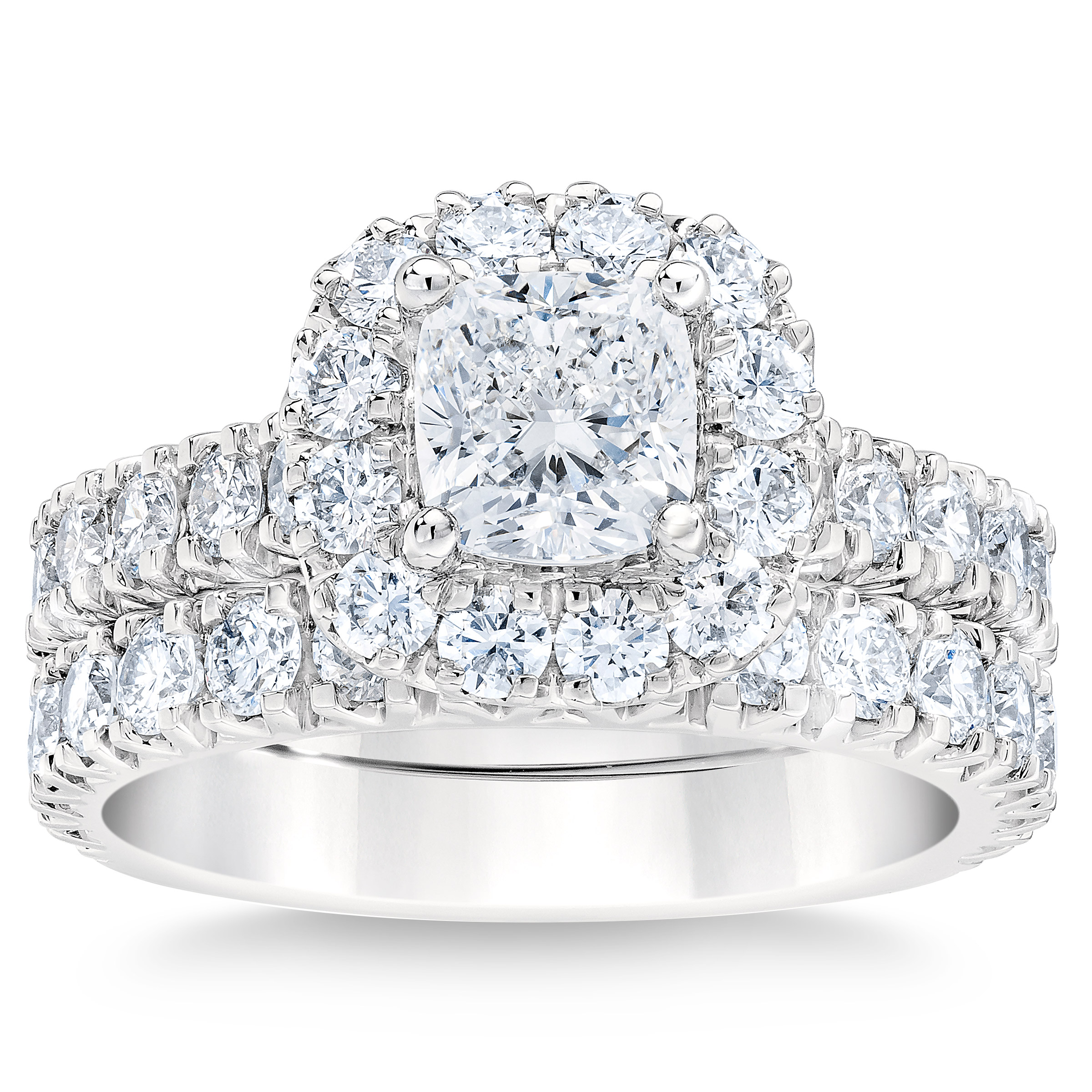 Cushion Cut & Round Brilliant 3.00 ctw VS2 Clarity, G Color Diamond Platinum Halo Wedding Set