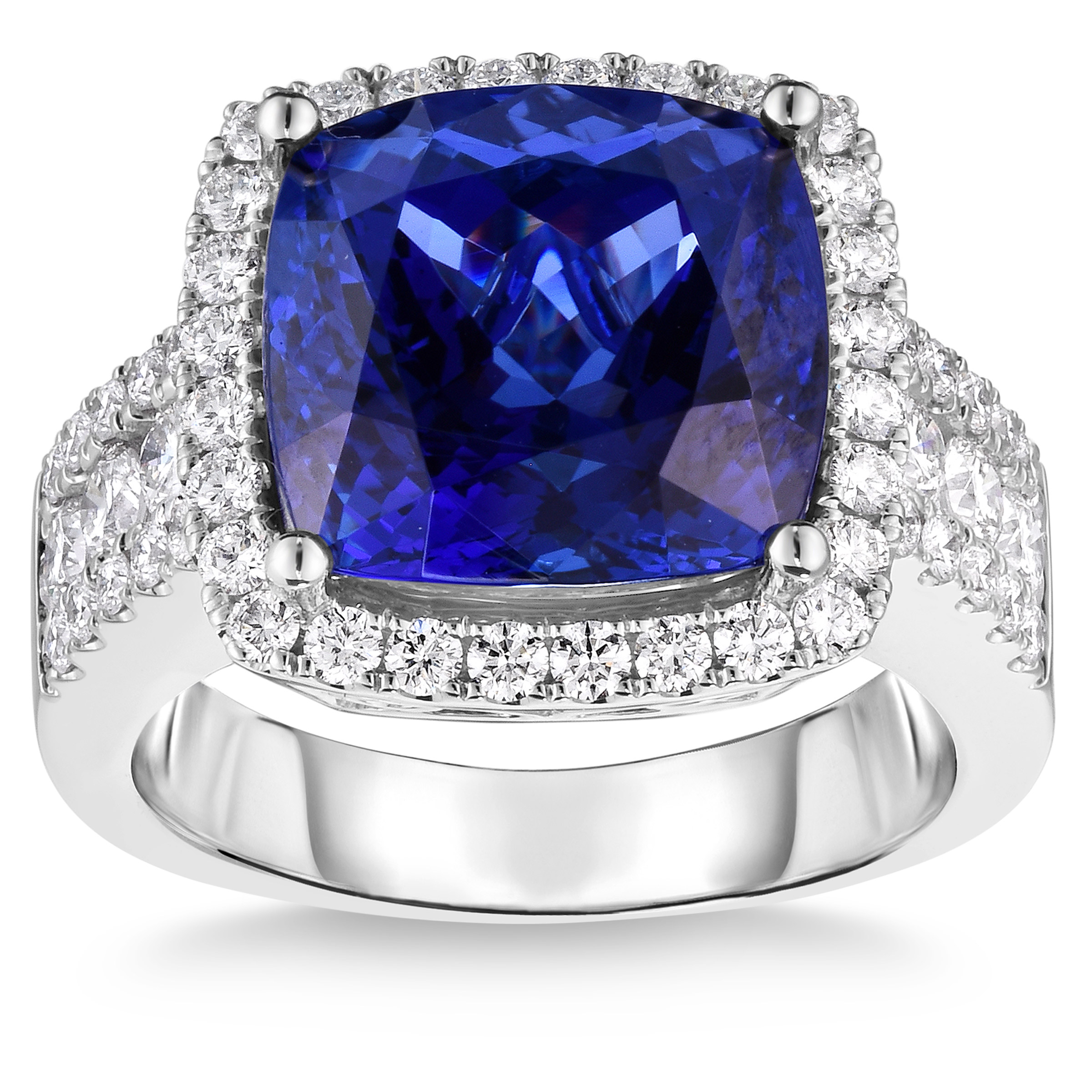 Cushion Cut Tanzanite & Diamond 18kt White Gold Ring