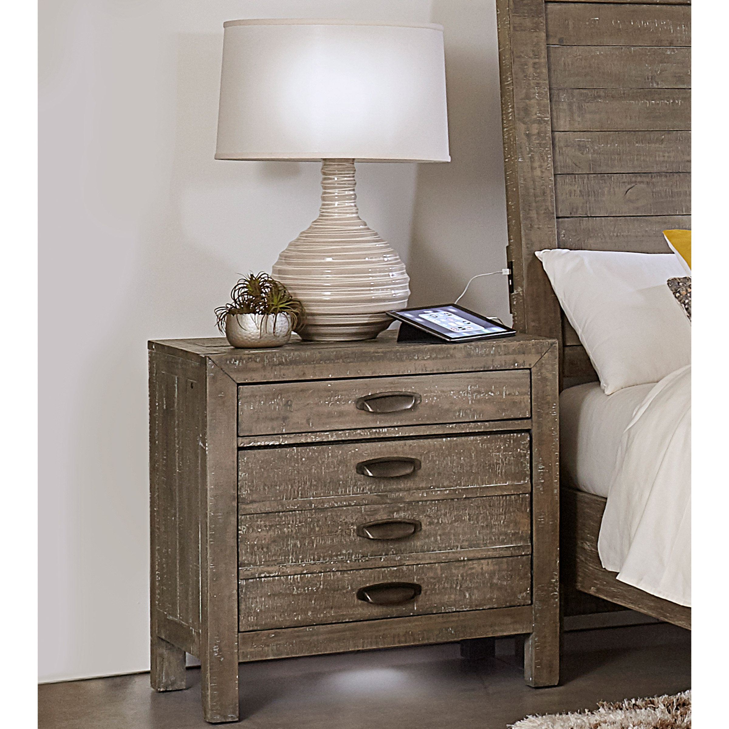 Transform your room with the Dandridge bedroom collection. Featuring a River Rock finish with a transitional rustic look, the Dandridge is an eclectic fit for nearly any decor. The apothecary style cup hardware pulls have a simple, modern shape, with an oil rubbed bronze finish.
