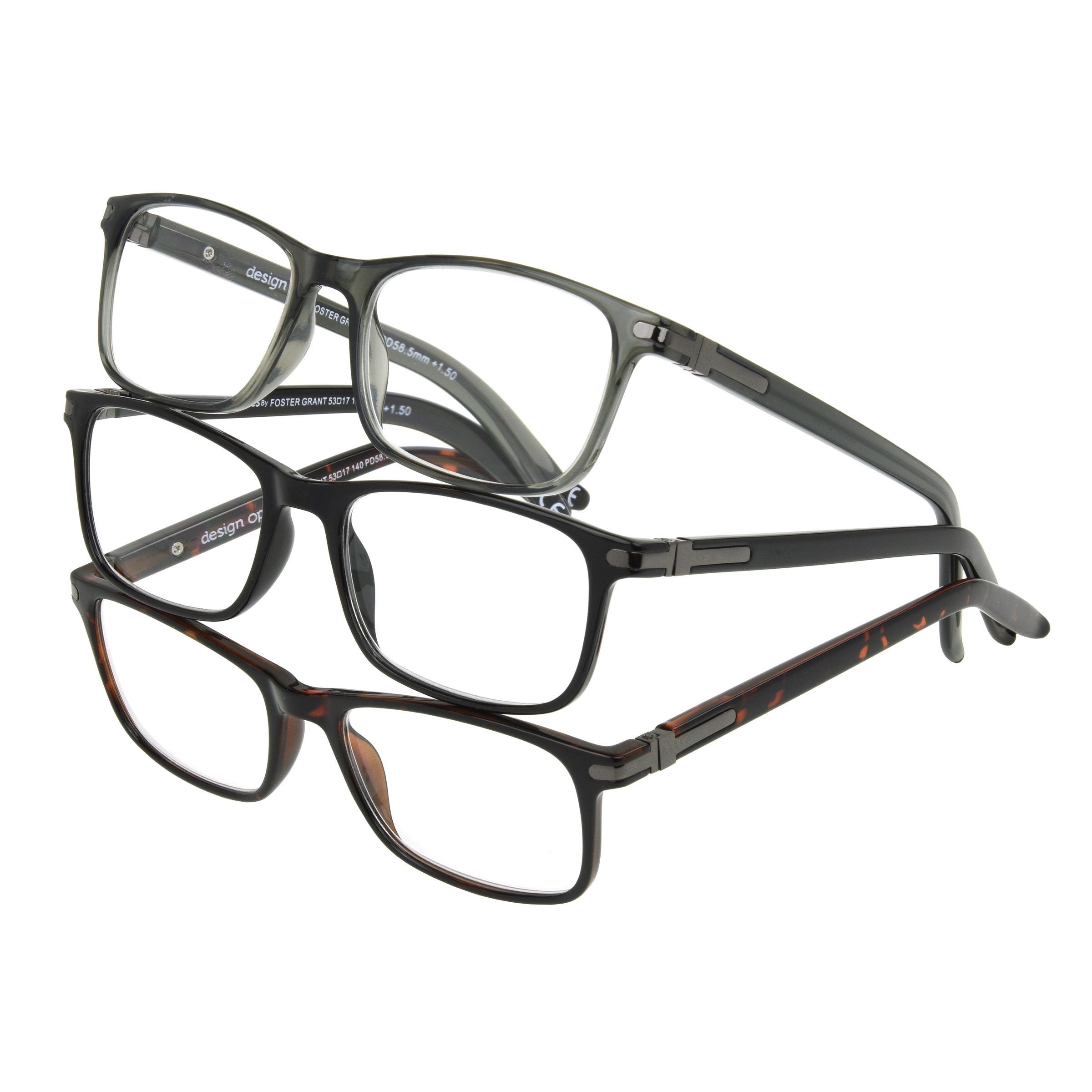 Design Optics by Foster Grant Cole Full Rim Rectangular Reading Glasses, 3-pack