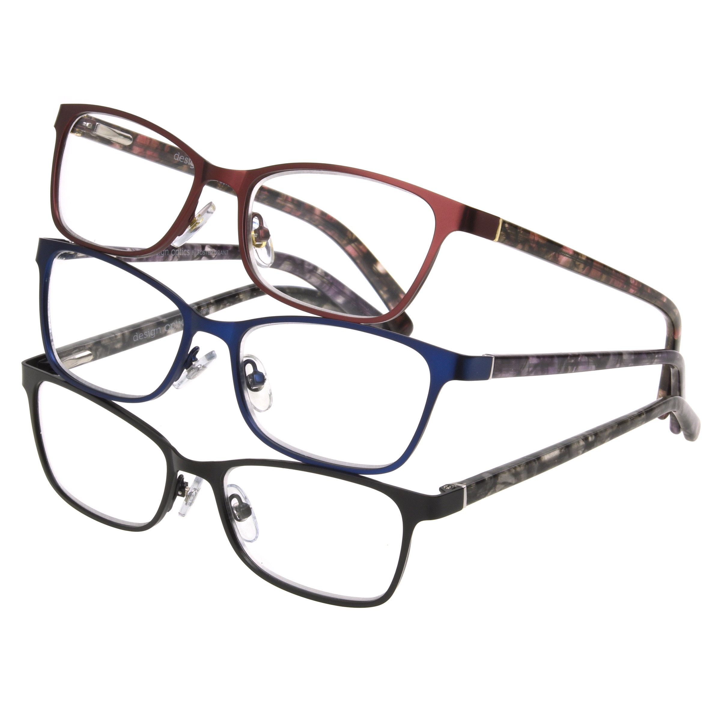 Design Optics by Foster Grant Fernanda Full Rim Metal Reading Glasses, 3-pack